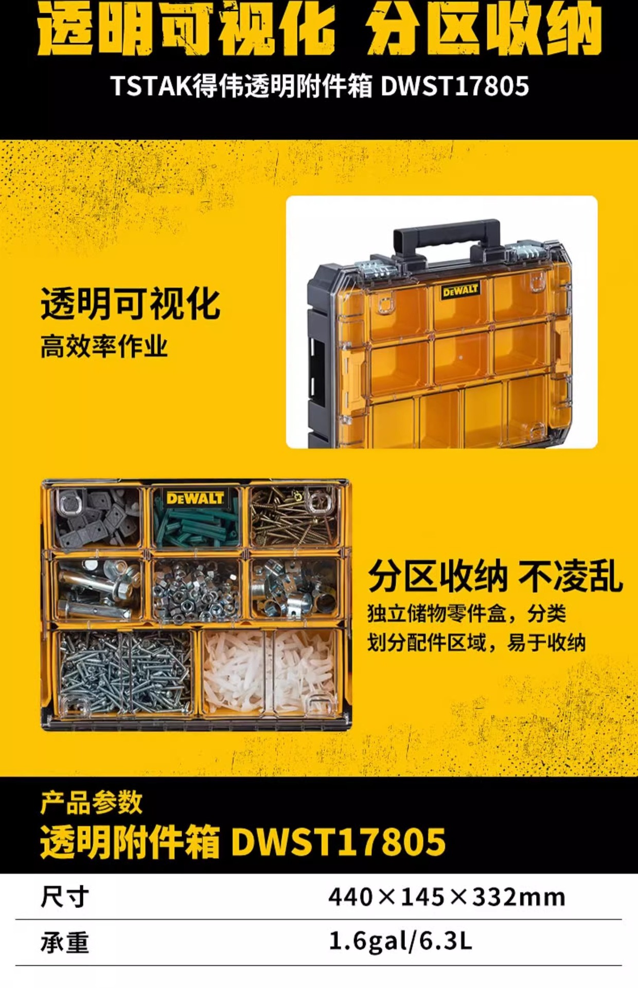 Serie de accesorios de hardware transparentes de herramientas de piezas de caja de almacenamiento de plástico DWST17805