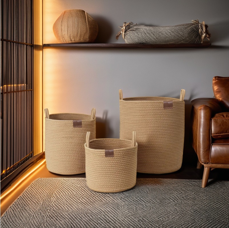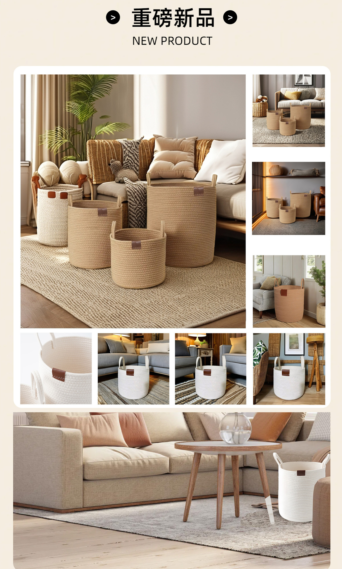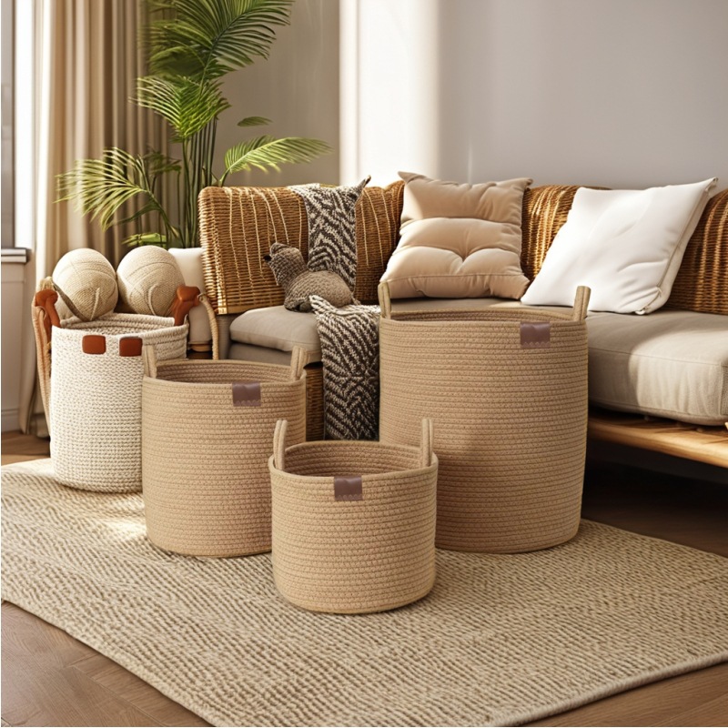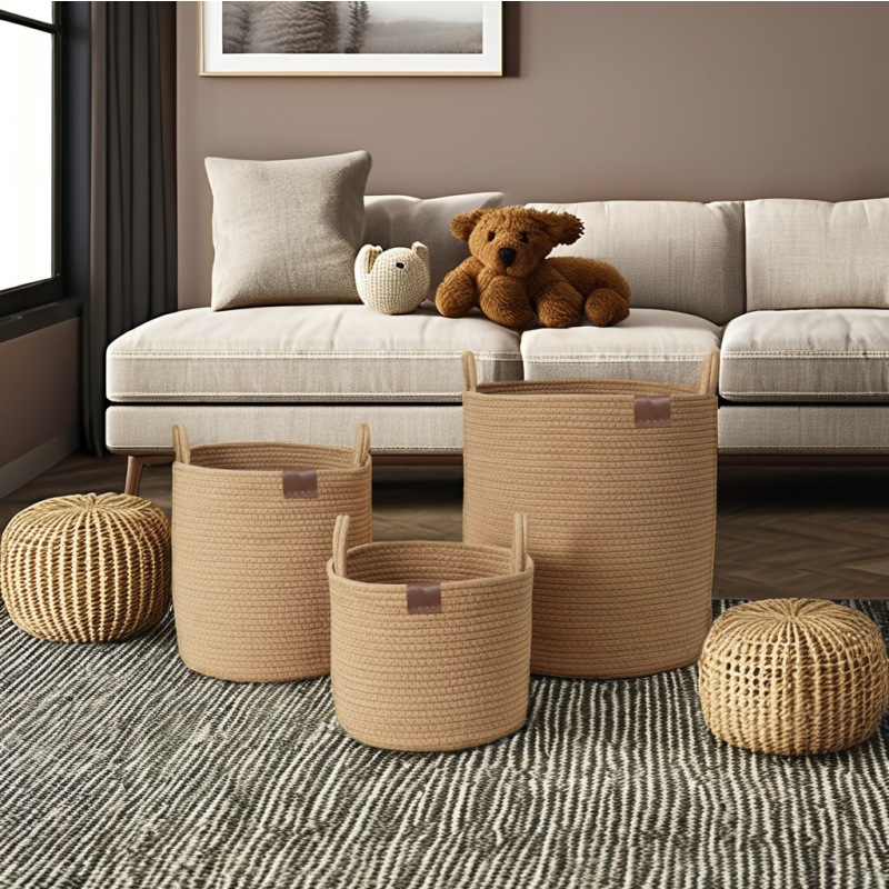 Cesto de almacenamiento de juguetes de peluche, cesta de almacenamiento de ropa sucia, cesta de lavandería de yute, fabricante de artículos para el hogar, ropa