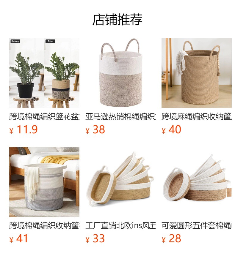Amazon Hot Sale Cesta de almacenamiento de tejido de paja Cesta de almacenamiento de tejido Cesta de almacenamiento de cestas de tejido de caña Cesta de almacenamiento de basura
