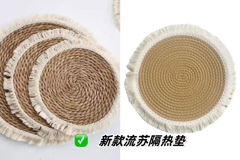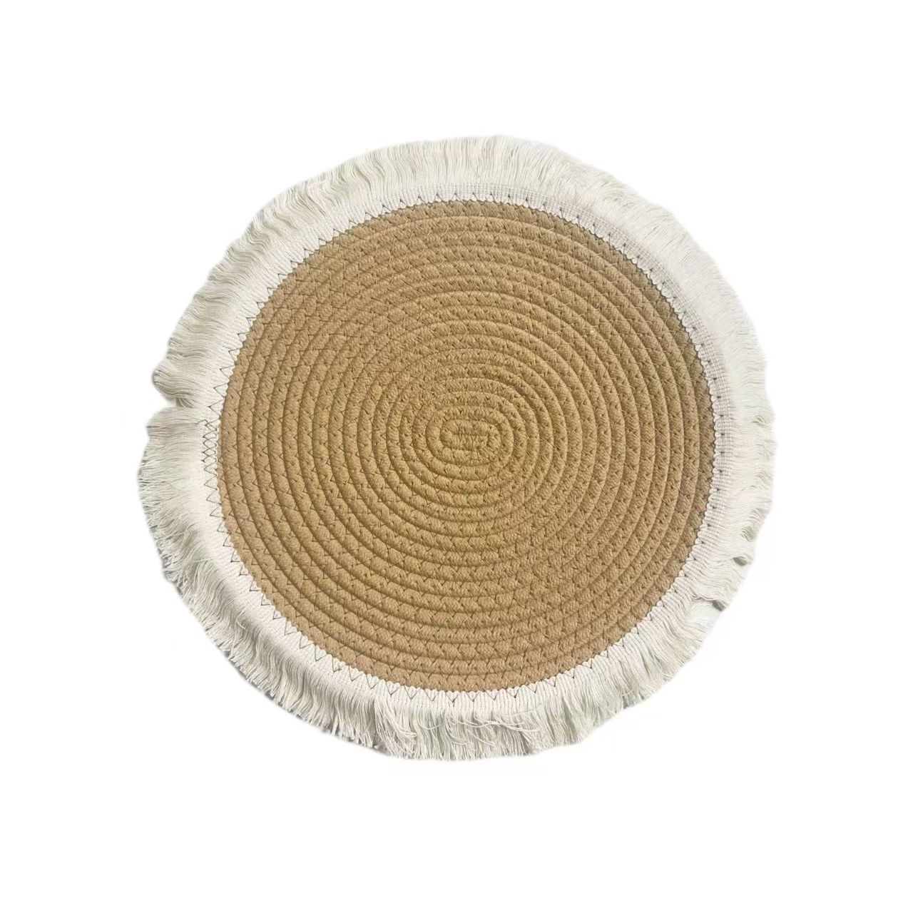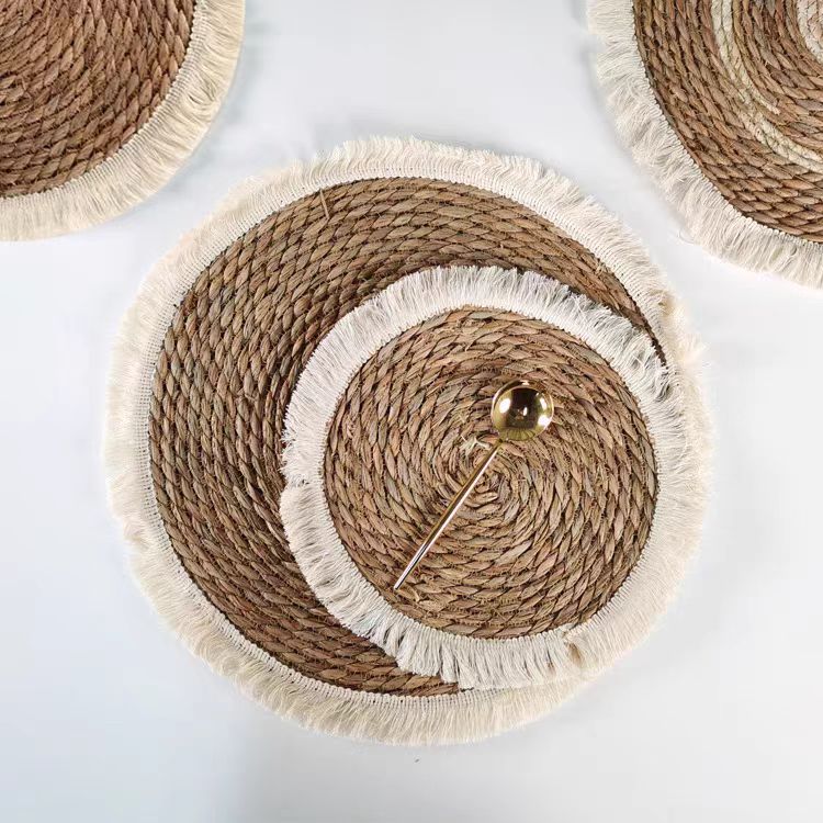 Cojín de paja de borde frisa gruesa mortero de aislamiento térmico colchón de caucho redondo tela de paja tela mesa de mesa cojín cubiertos
