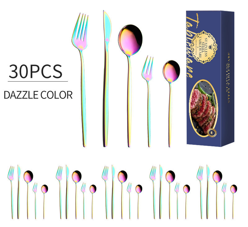 Amazon cubiertos de acero inoxidable transfronterizos set 30 piezas brillante cuchillo y tenedor portugués cuchillo y tenedor de filete de restaurante occidental cuchara
