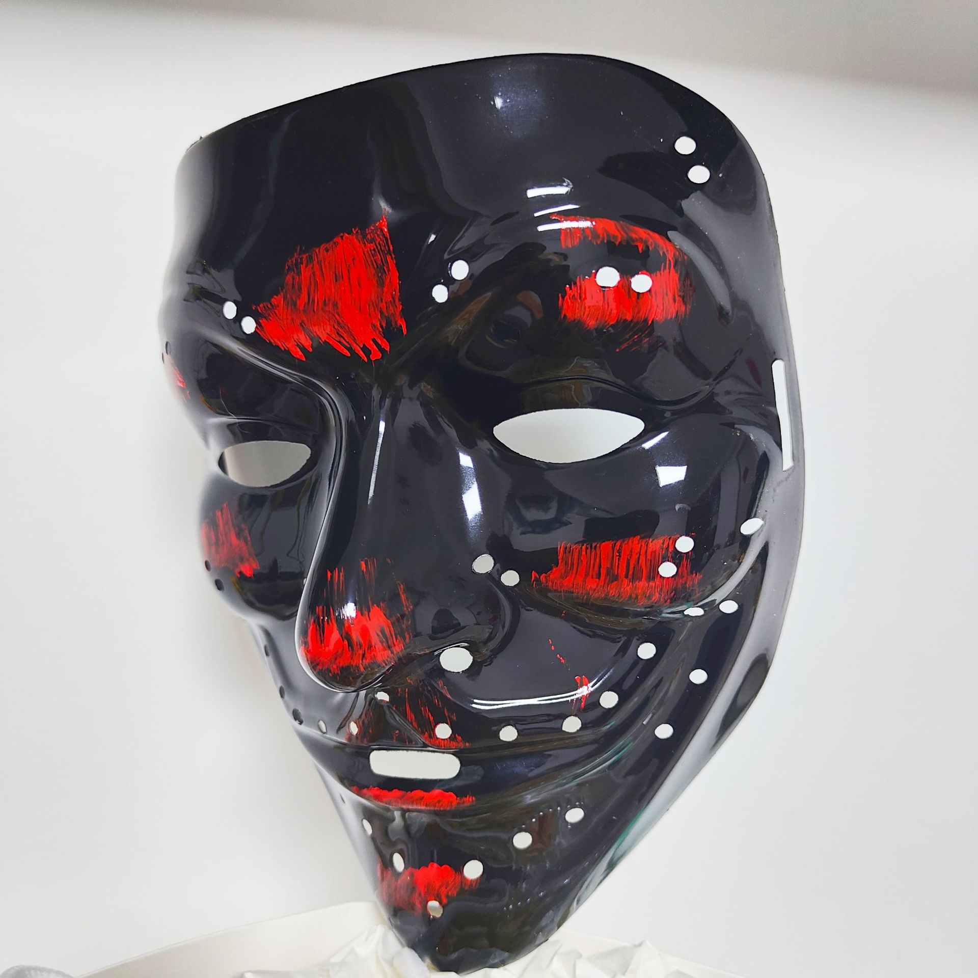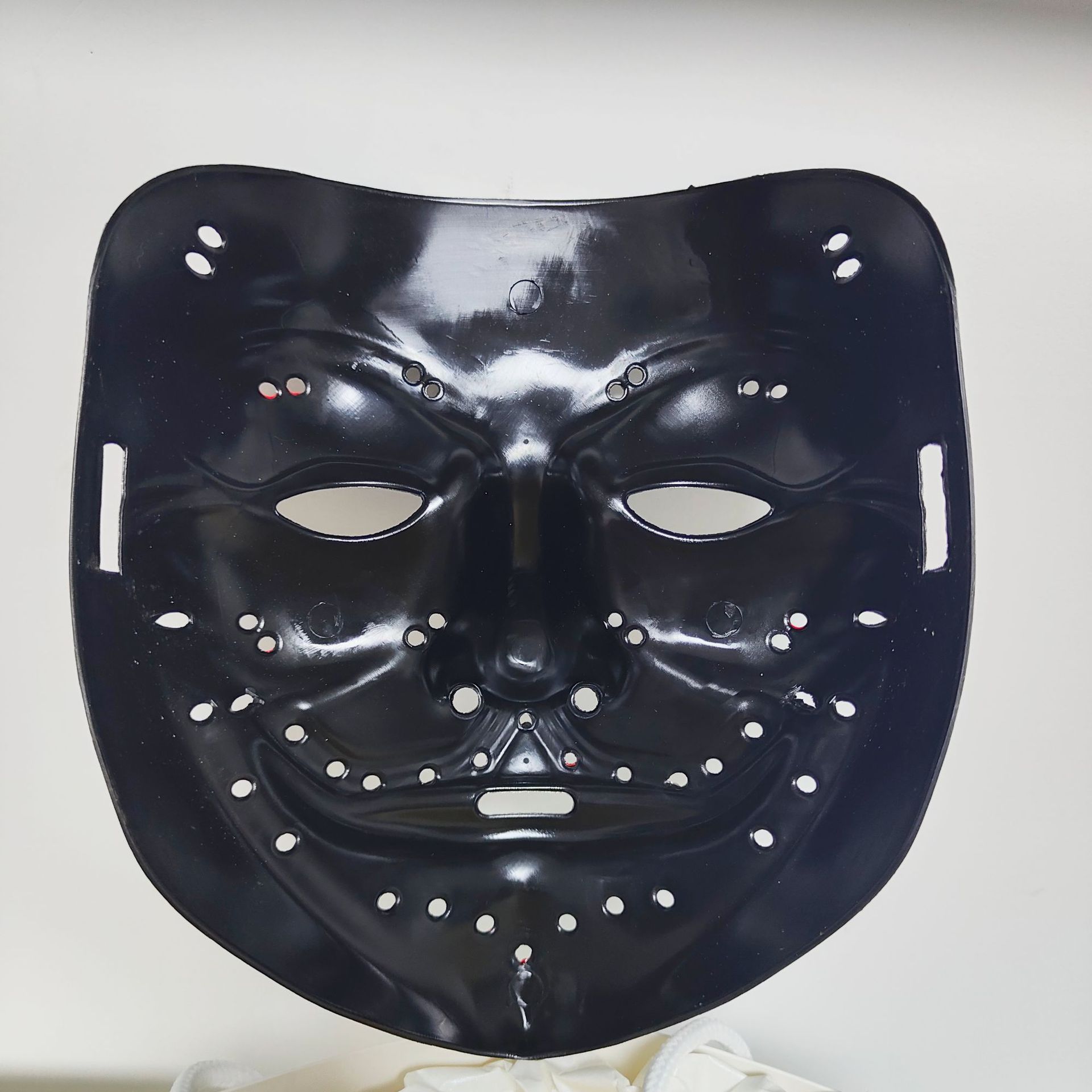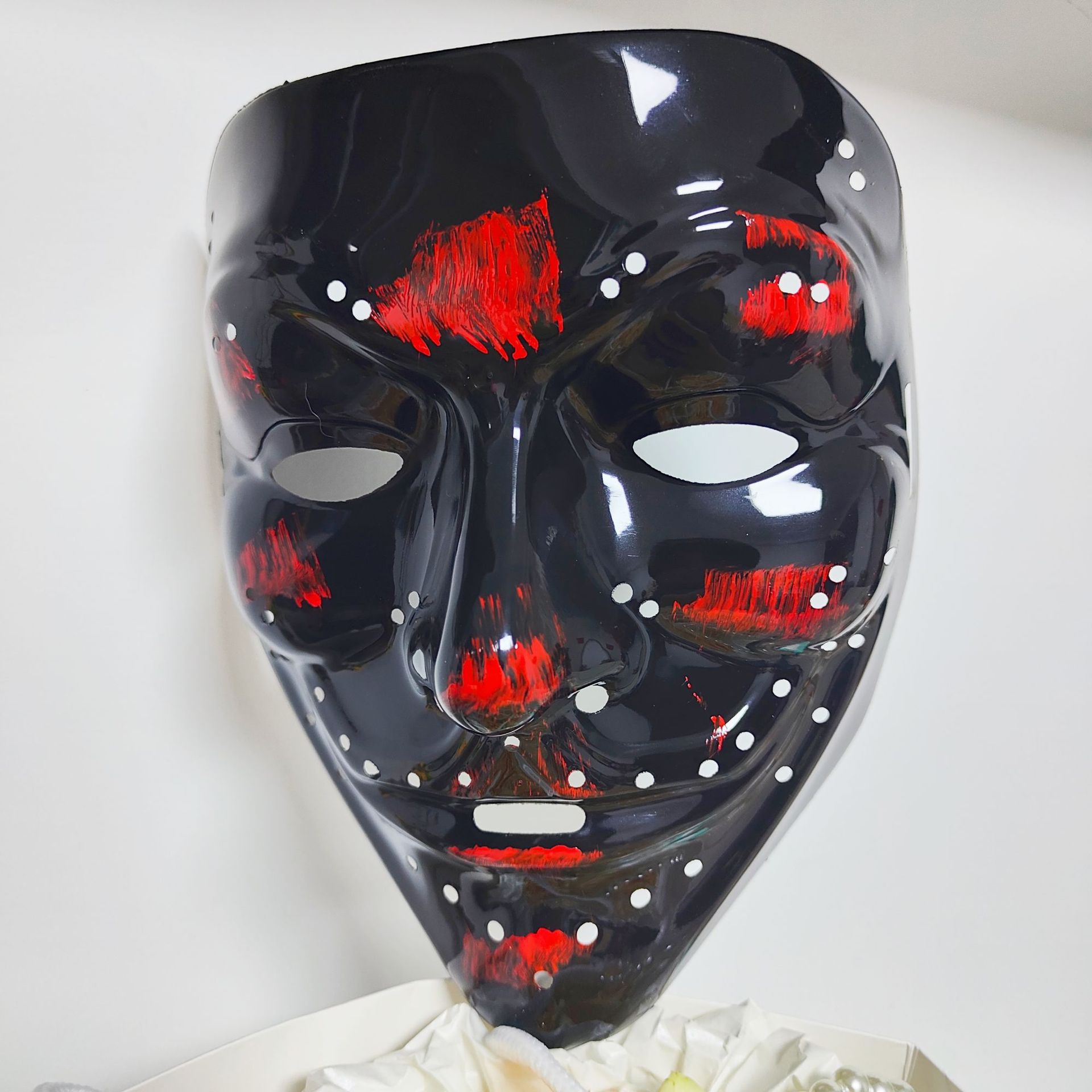 Luz fría luminosa a través de la lámpara con agujero máscara PP máscara de Halloween máscara de baile de calle máscara de agujero bicolor procesamiento en forma de V
