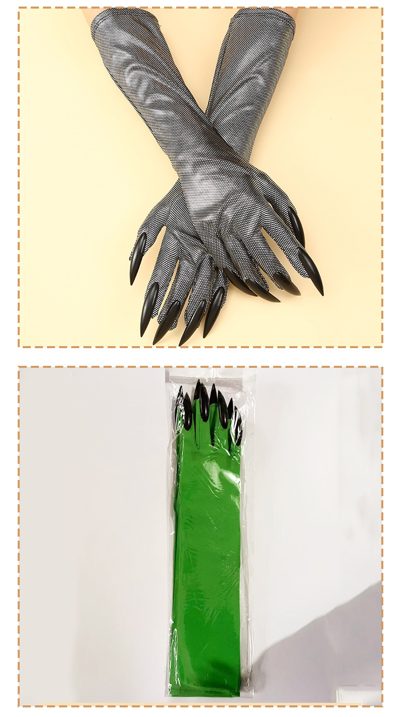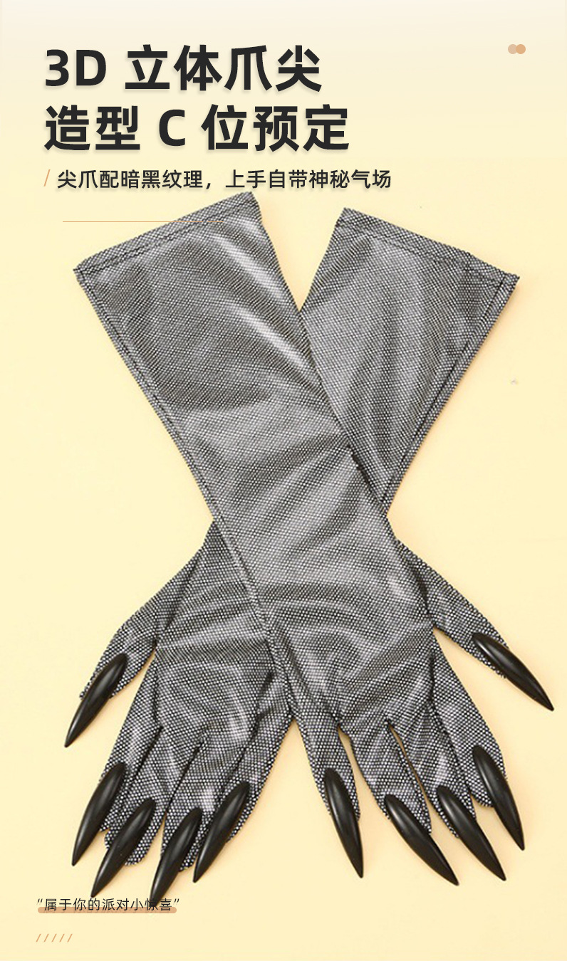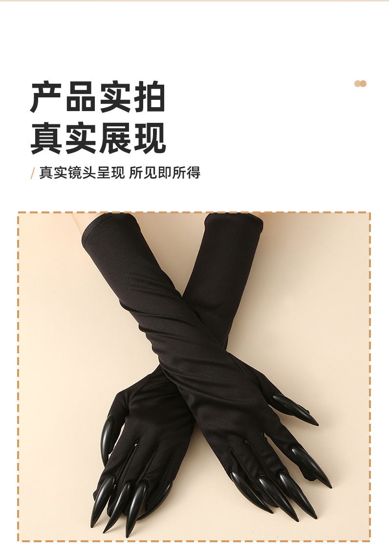 Guantes de garra de Halloween, uñas de lentejuelas negras, accesorios de cosplay de Hollowen, guantes de uñas largas