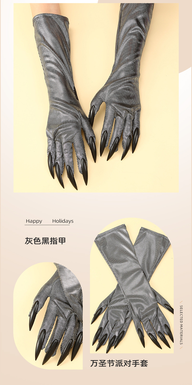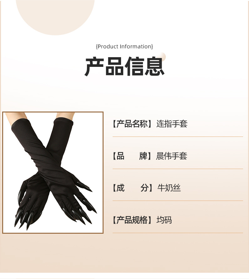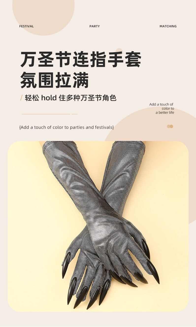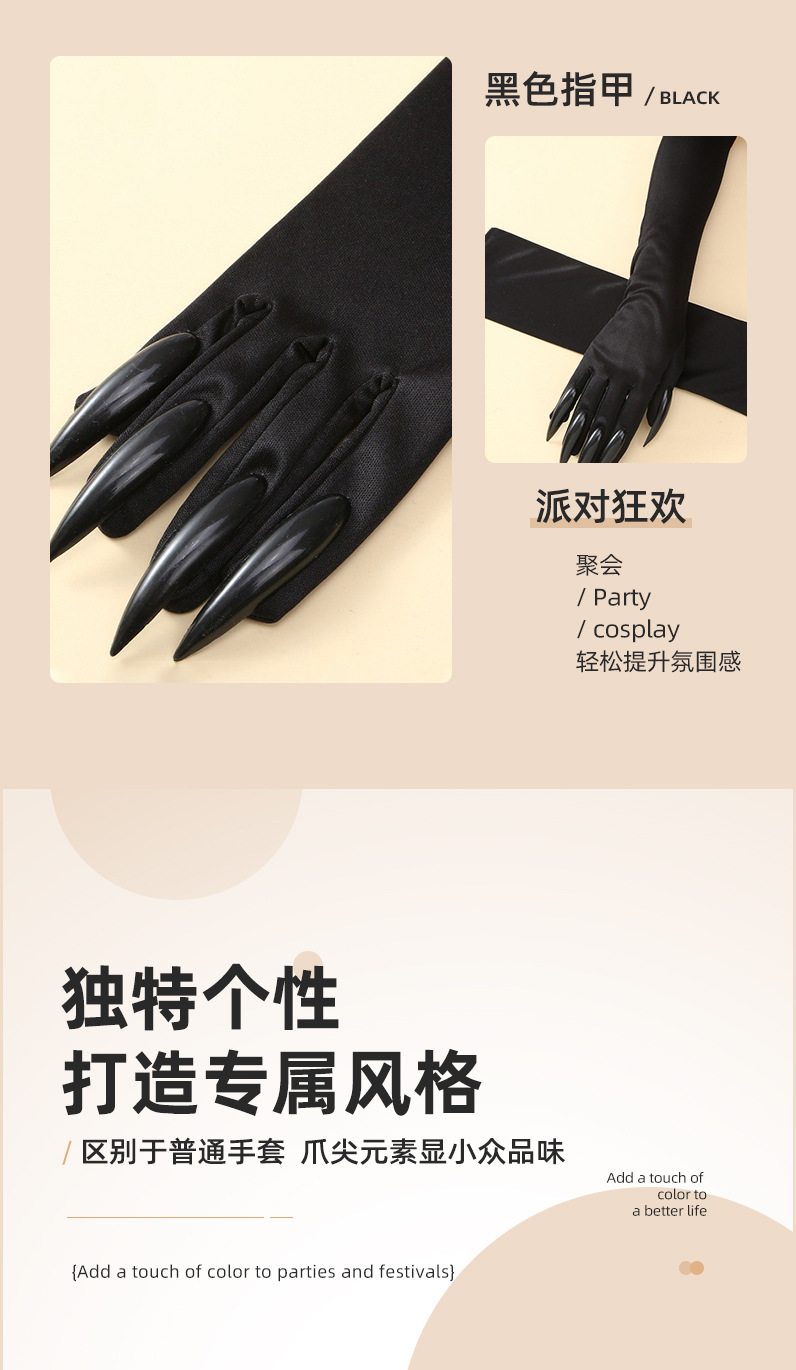 Guantes de garra de Halloween, uñas de lentejuelas negras, accesorios de cosplay de Hollowen, guantes de uñas largas
