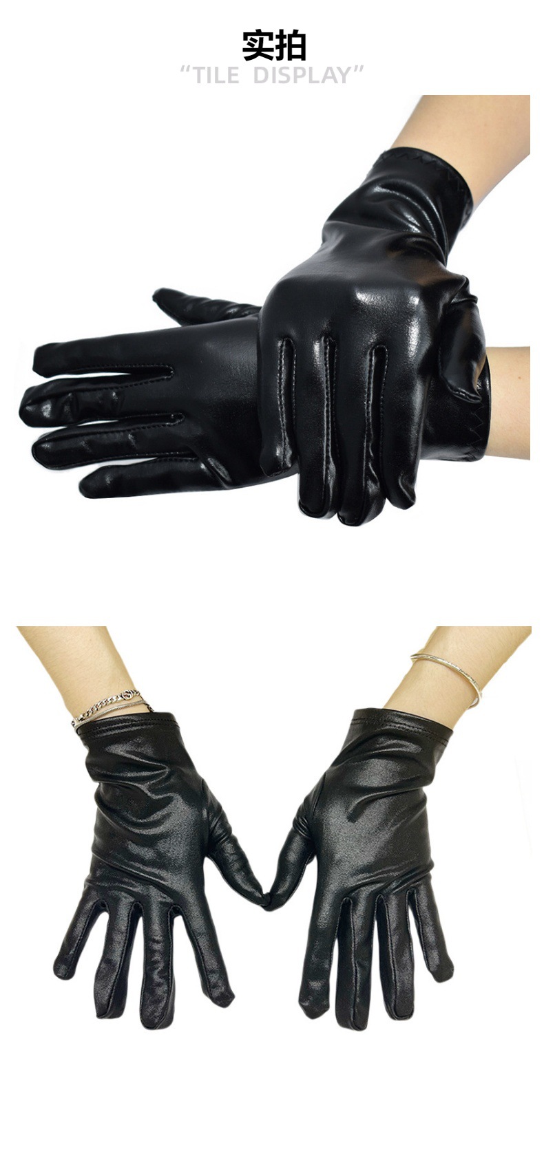 Guantes cortos de charol elásticos, guantes punk para actuaciones, guantes de baile estilo Harajuku oscuro, guantes de cosplay
