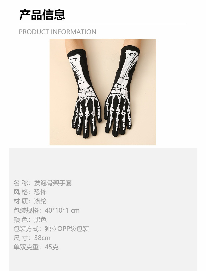 Halloween impreso cráneo guantes esqueleto guantes de espuma accesorios de fiesta de baile