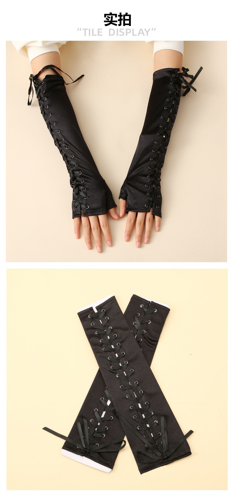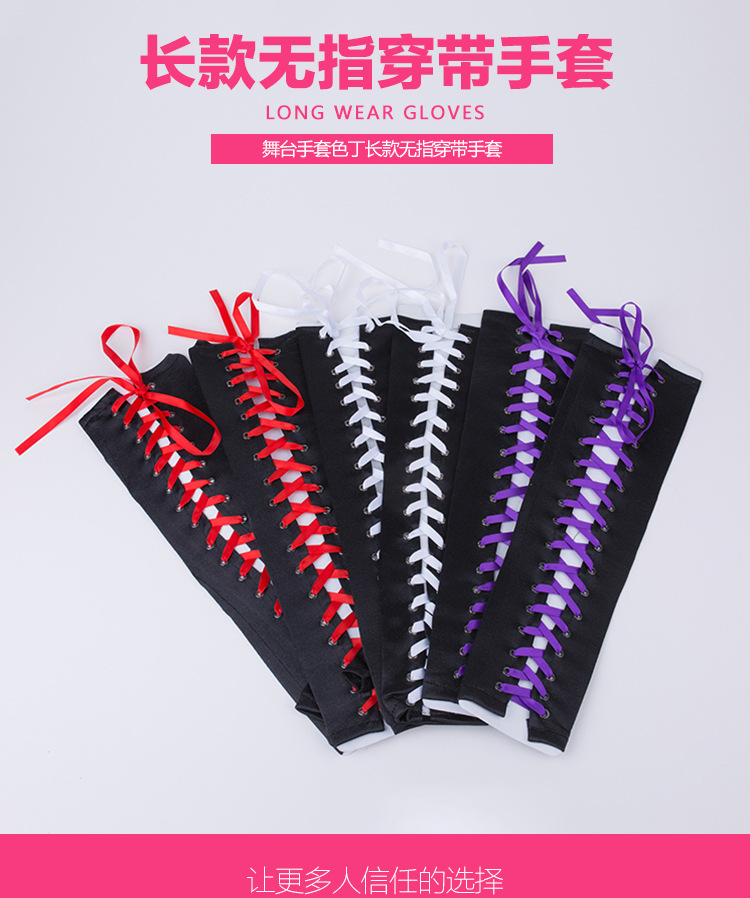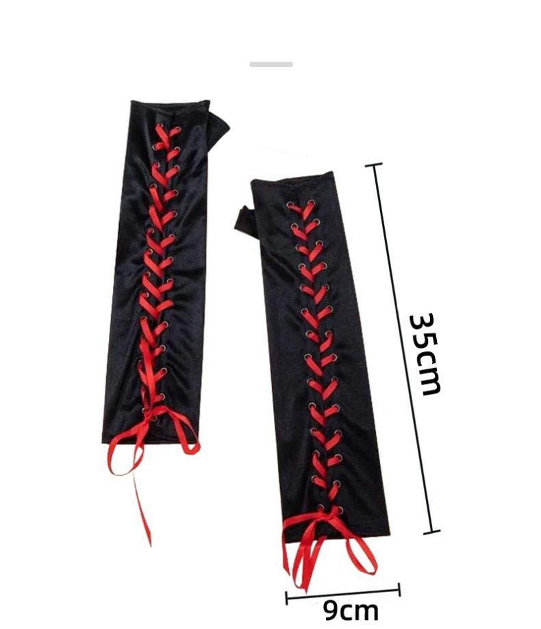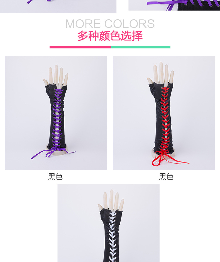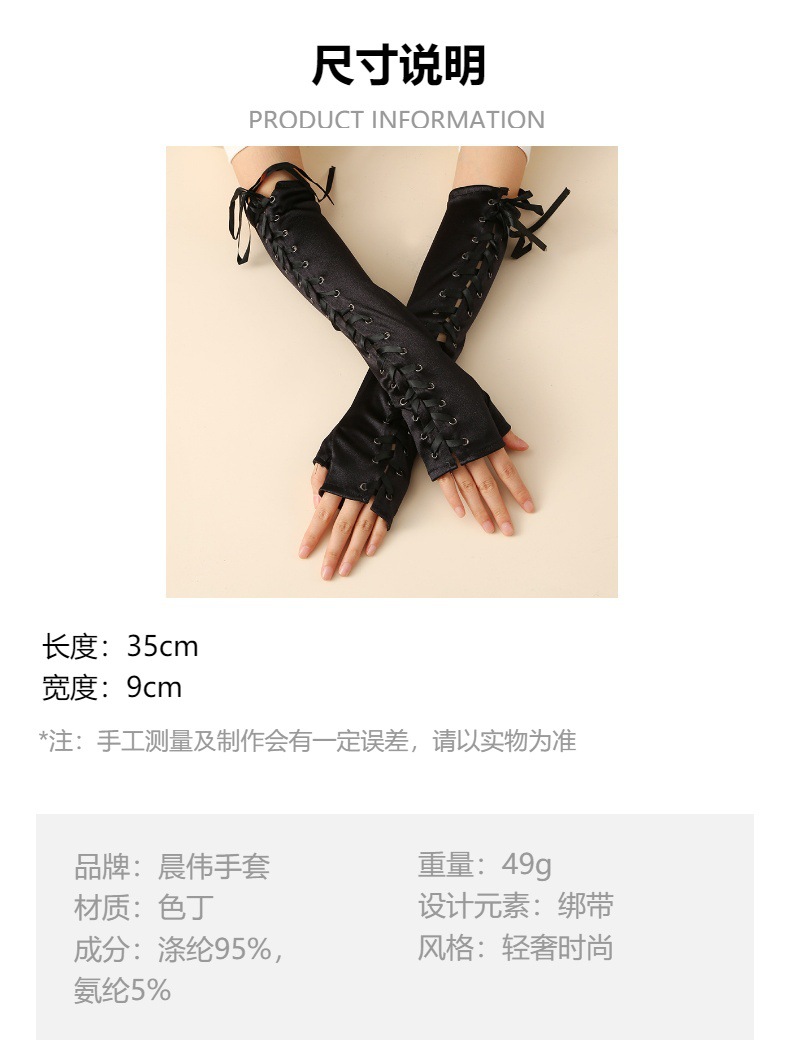 Guantes sin dedos con cordones largos guantes de satén negro codo manga larga adecuada para el compromiso de la boda FIESTA DE Halloween mano