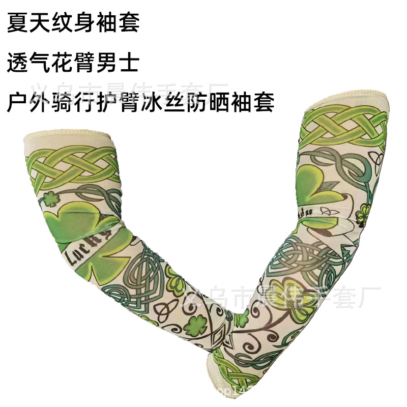 Verano trébol tatuaje oesleeve hielo seda brazo protección pesca protección solar viaje esencial