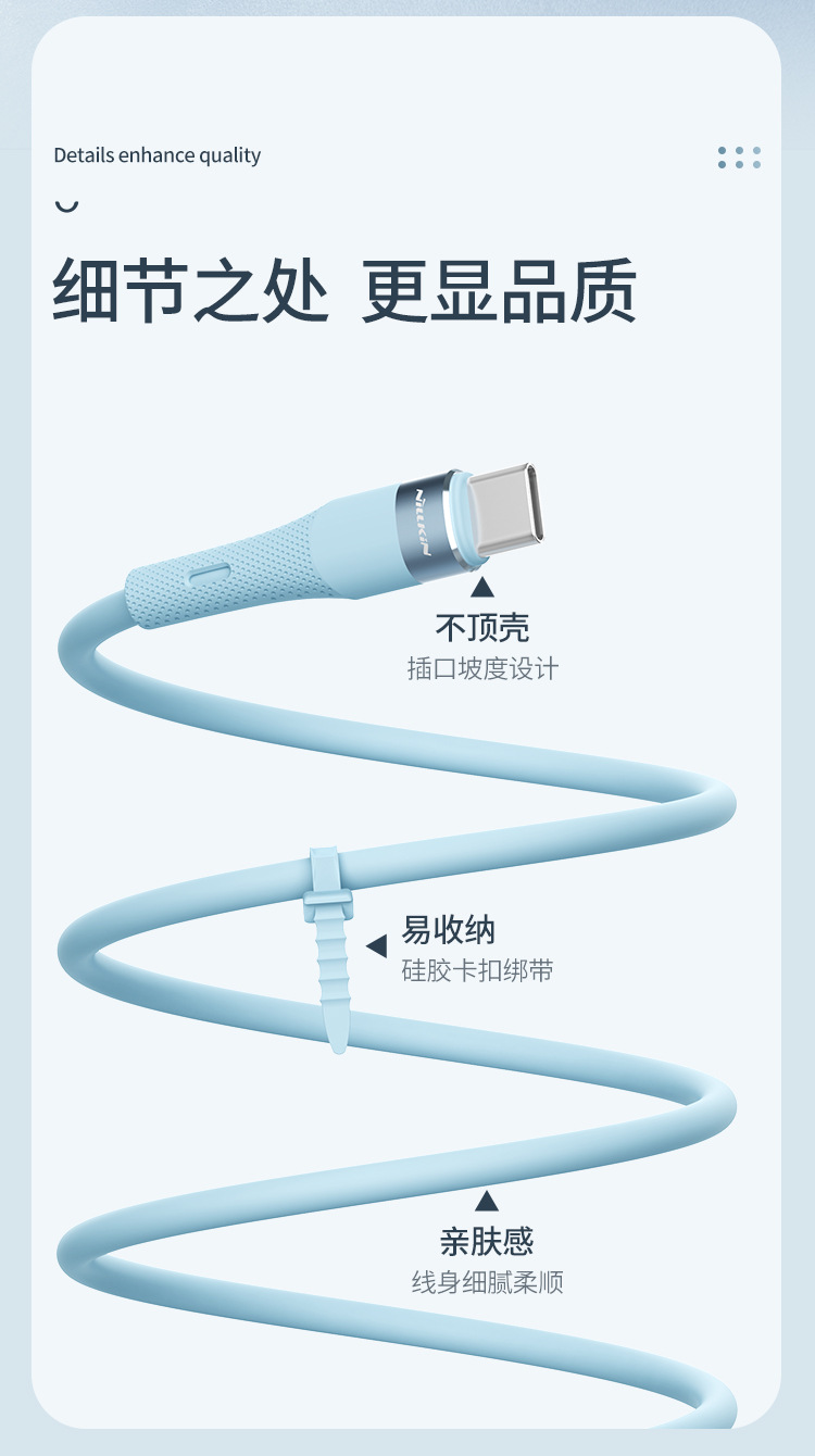 Nillkin nuevo runjie cable de datos de silicona líquida para Apple 14 Android TYPE-C teléfono móvil cable de carga