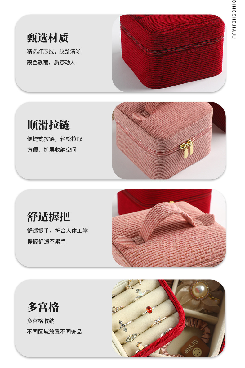 Caja de joyería portátil de melee de alta calidad, bolsa de maquillaje de viaje de gran capacidad, joyería lápiz labial, caja de almacenamiento con cremallera portátil
