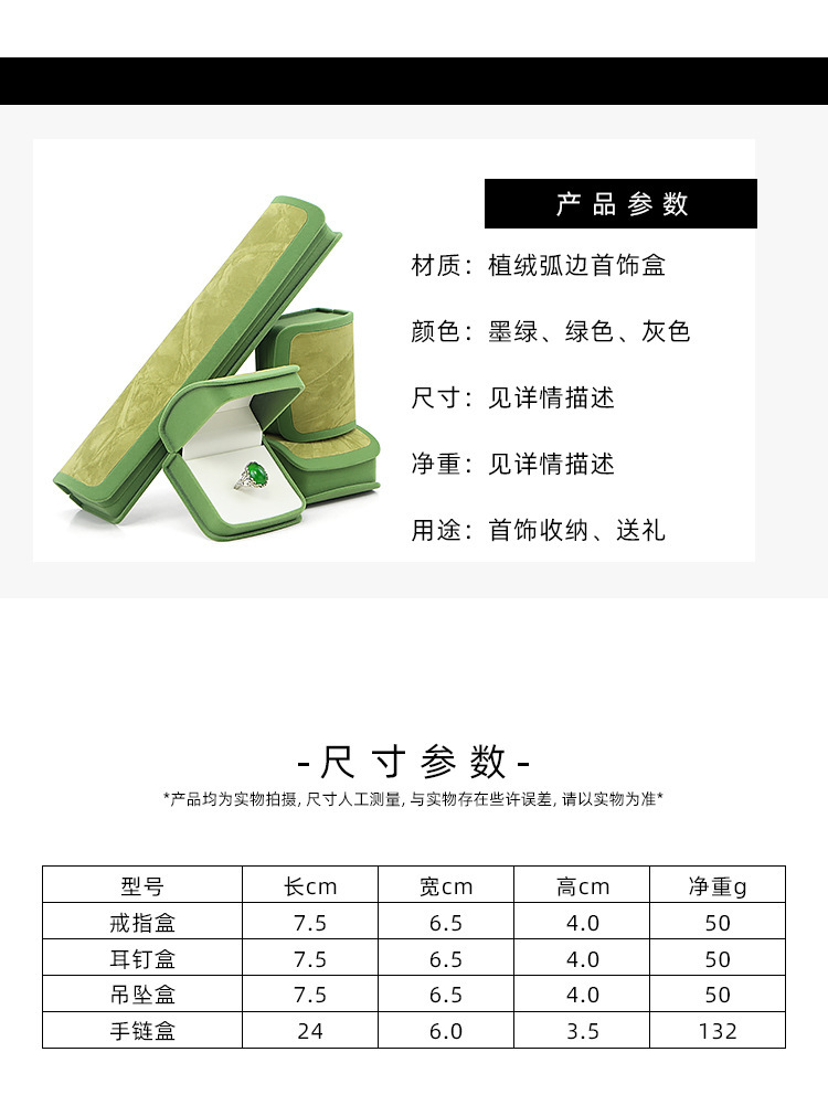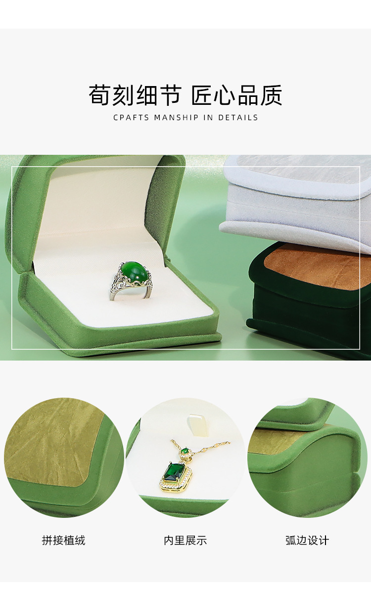 Nueva caja de joyería curva de alta gama, caja de almacenamiento, caja de anillo de franela, collar colgante, aretes, pulsera, caja de joyería