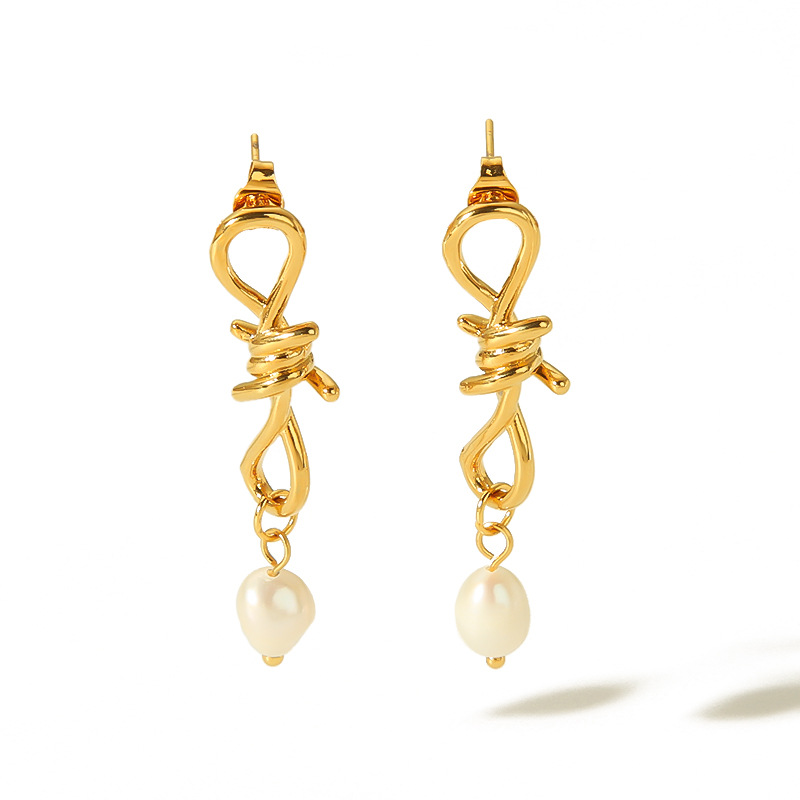 Nicho europeo y americano exagerado diseño mariposa pendientes de perlas pendientes de oro de 18k para mujeres simple joyas de orejas de acero inoxidable