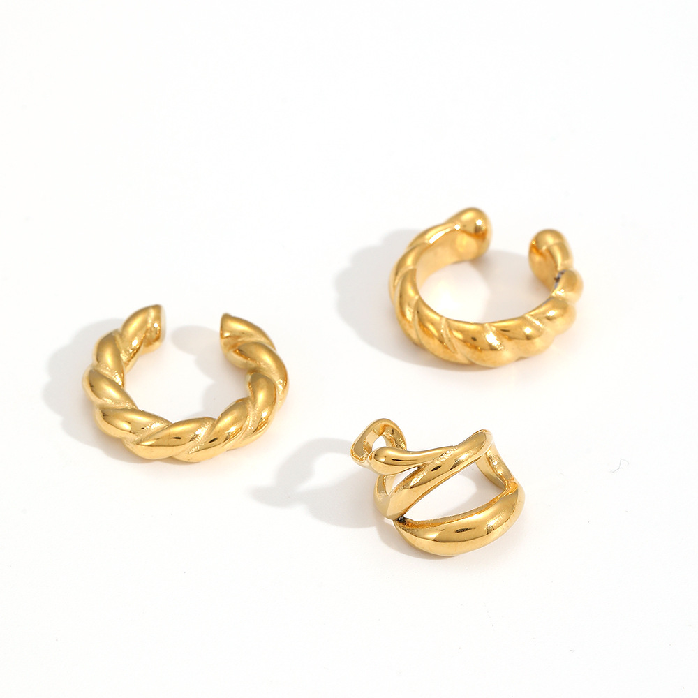 Pinza de hueso de la oreja de acero inoxidable con giro geométrico transfronterizo sin orejas, temperamento simple y versátil, sin decoloración, pendientes de clip de oreja de acero de titanio