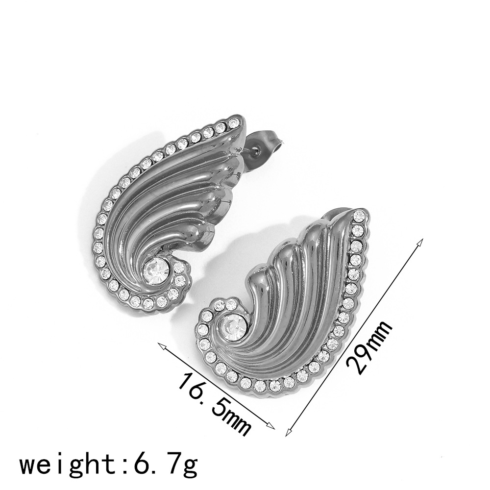 Europa y los Estados Unidos nuevos aretes de acero de titanio de lujo ligero con alas de diamante para mujeres con perlas nichos de alto nivel aretes de acero inoxidable