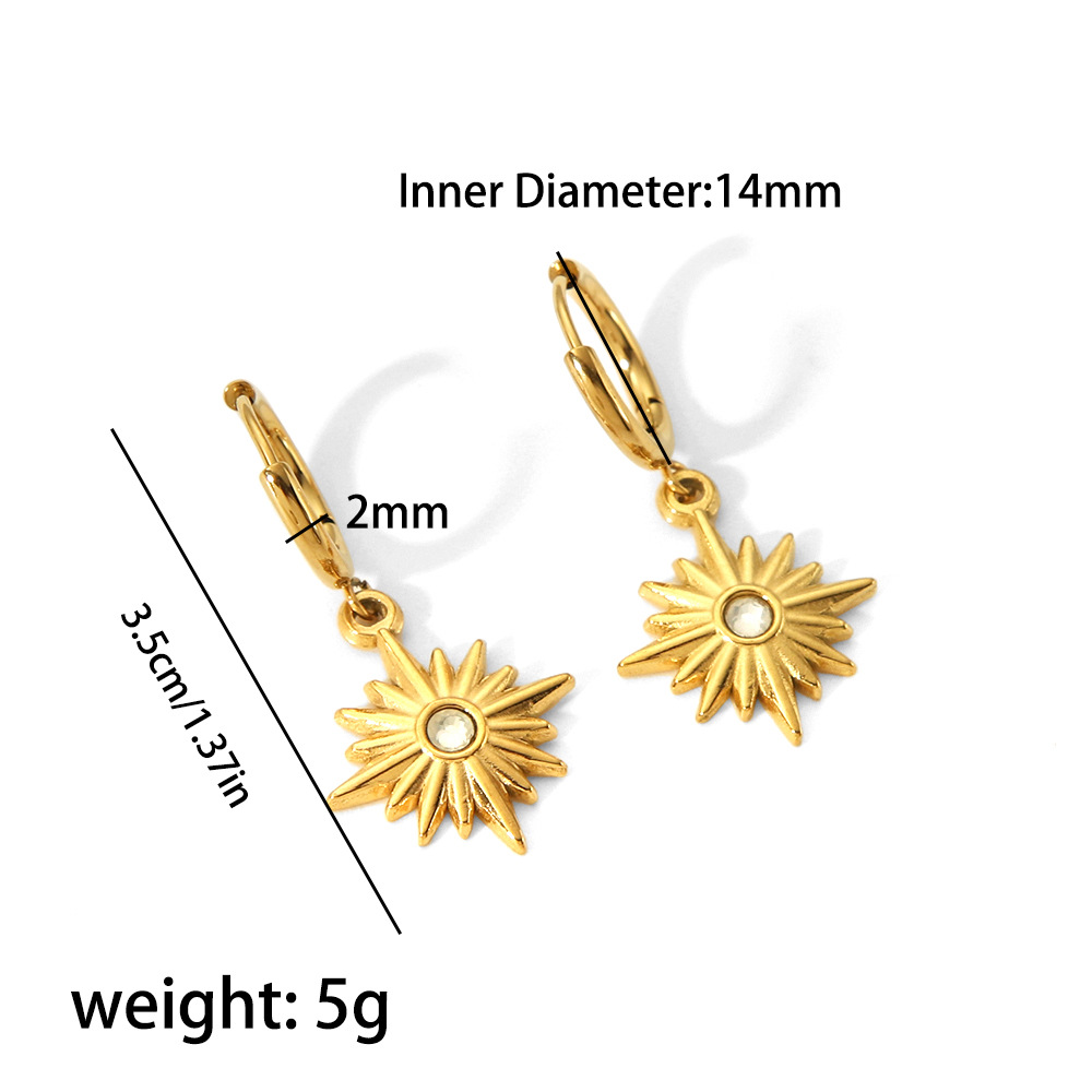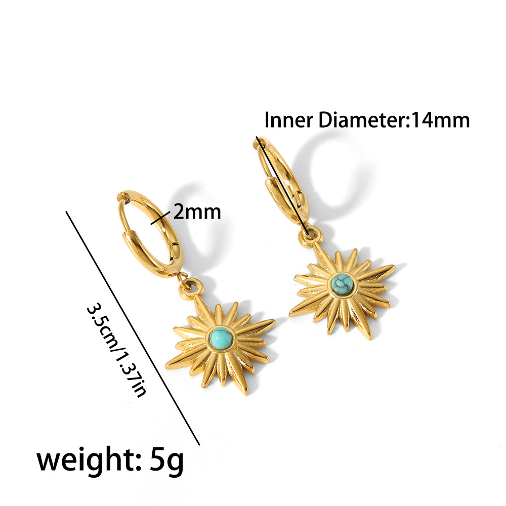 Europa y América ins diseño de moda pendientes 18K oro Acero inoxidable Piedra Natural ocho Awn estrella pendientes aro pendientes para las mujeres al por mayor