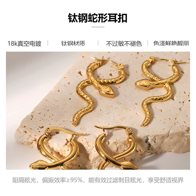 Europa y América transfronteriza en forma de serpiente de titanio hebilla de oreja de acero de la personalidad de la moda 18K chapado en oro hebilla de La Oreja pendientes de alta calidad de acero inoxidable hebilla de la oreja