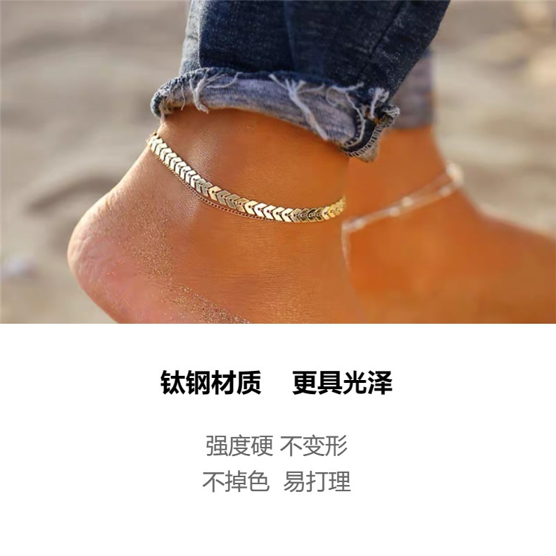 Tobillera de acero inoxidable chapado en oro 18K tobillera de acero inoxidable tobillera de DIY tobillera de acero de titanio de Venta caliente europea y americana