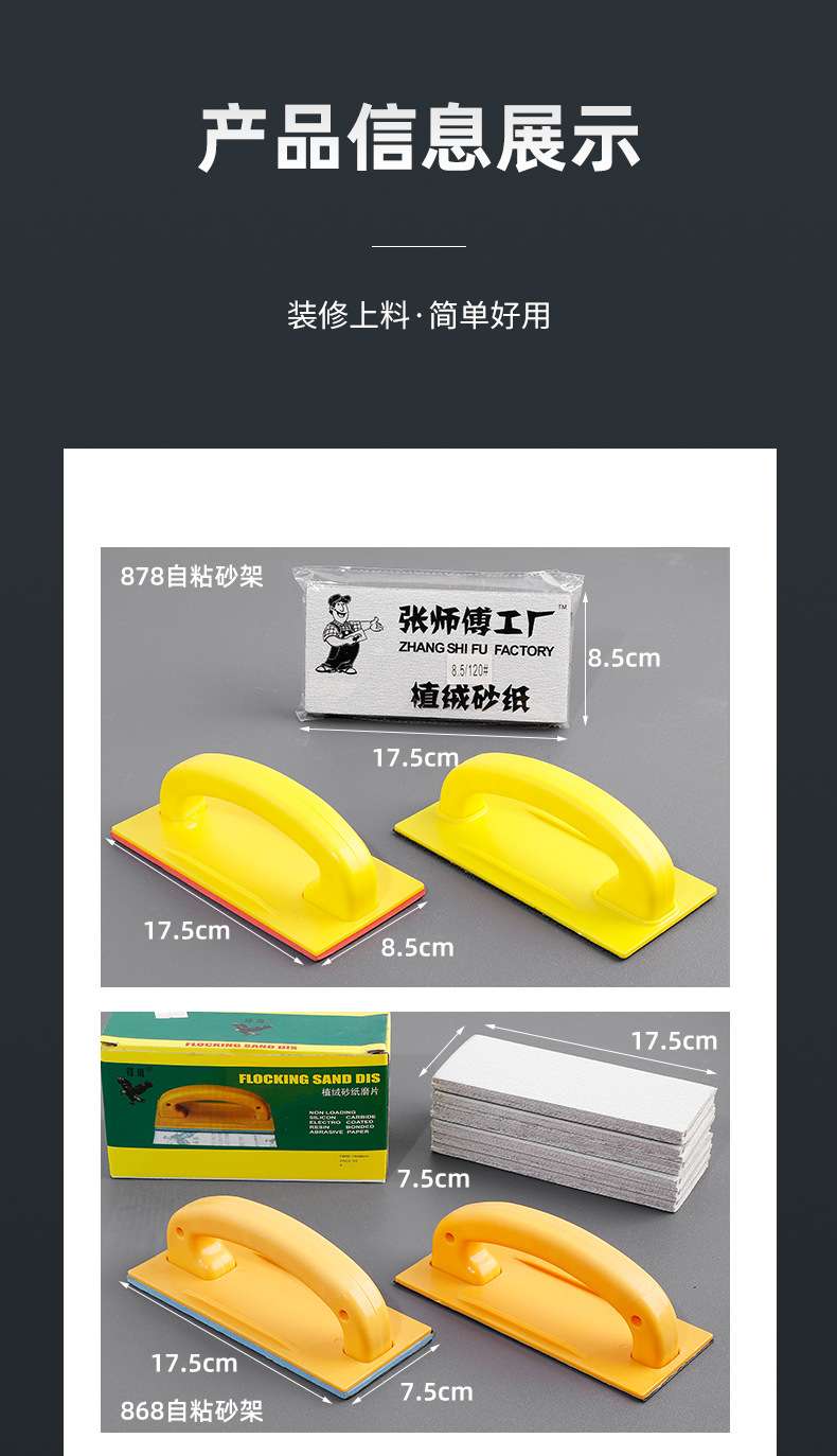 | Alcance DE LA APLICACIÓN | Soporte de papel de lija autoadhesivo, artefacto de pulido de paredes, soporte de papel de lija de esponja, soporte de arena de plástico grande, soporte de papel de lija autoadhesivo al por mayor |