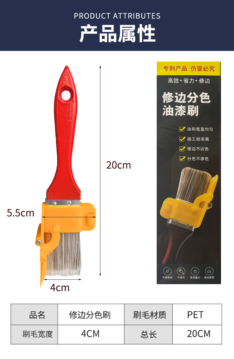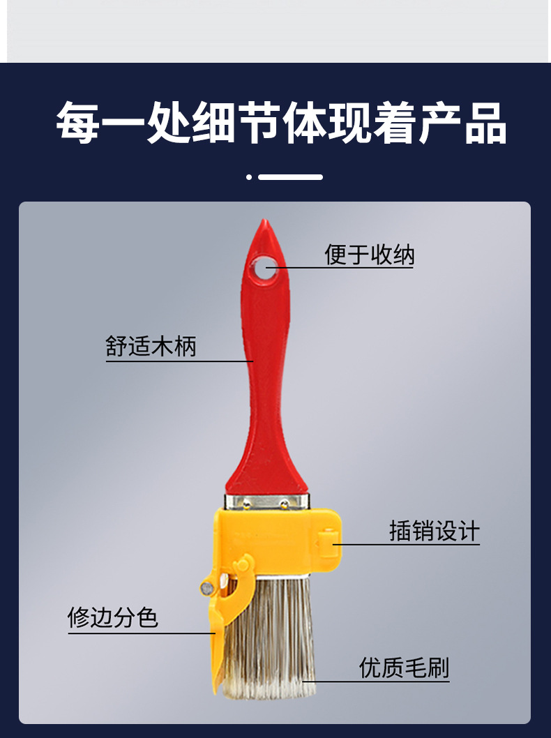 | Ámbito de aplicación | Cepillo de pintura de separación de color de recorte Cepillo de pared Cepillo de esquina Cepillo de esquina de pared interior de recorte Cepillo de herramienta de decoración de pintura de látex |