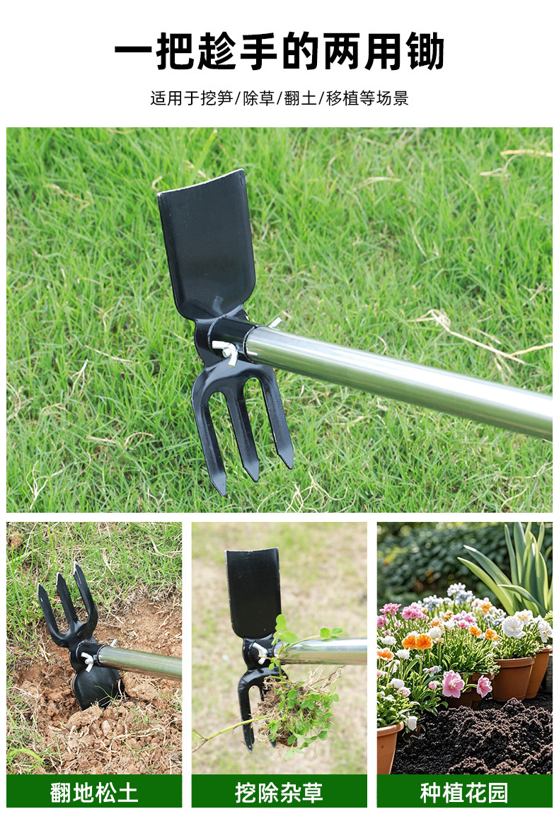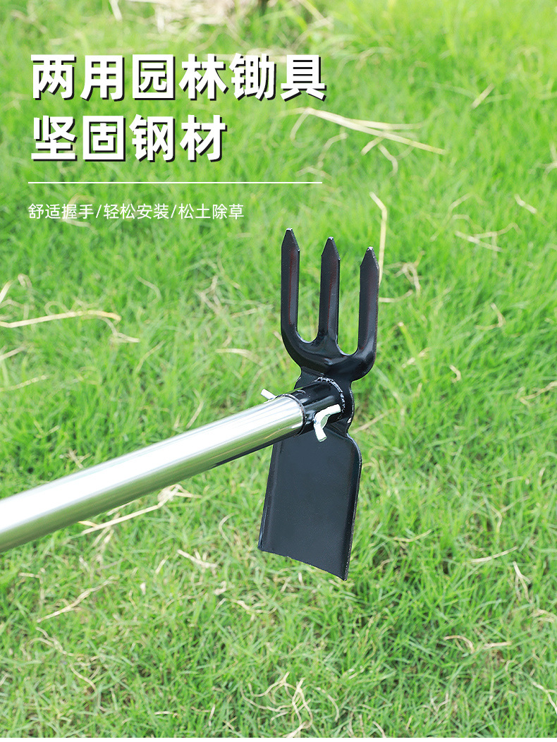 Jardín de azada de doble cabeza de azada de tres azadas de jardinería de doble propósito pequeña azada de flores de plantación de verduras de flores caseras azada de arena multifuncional