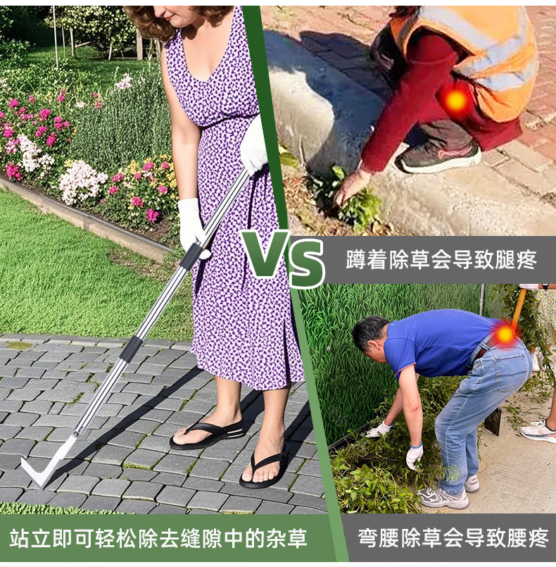 Cepillo de deshierbe de acero inoxidable Gancho de deshierbe Juego de cuchillo de deshierbe Gancho de corte de hendidura Deshierbe desmontable Limpieza Herramientas de jardinería
