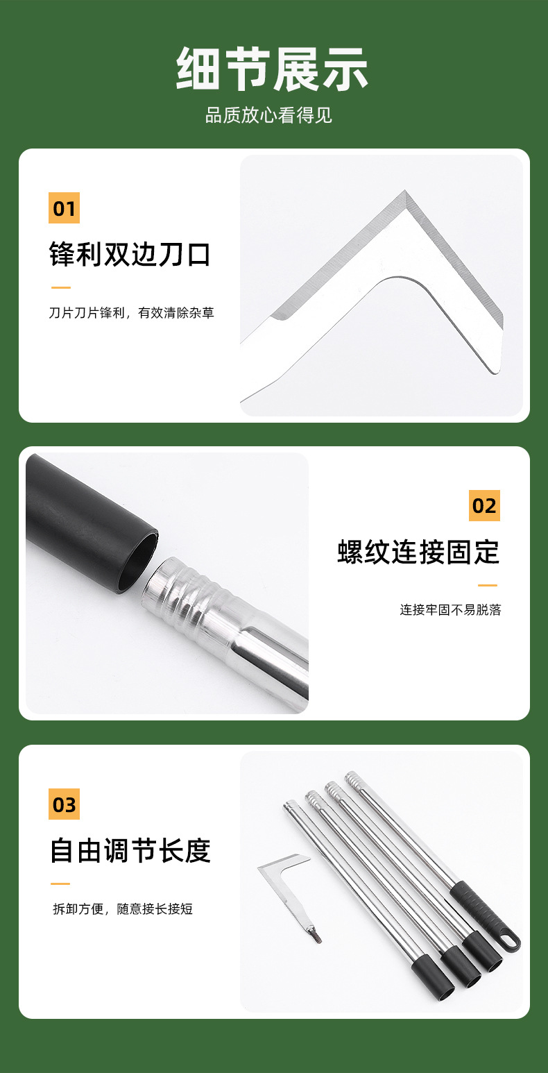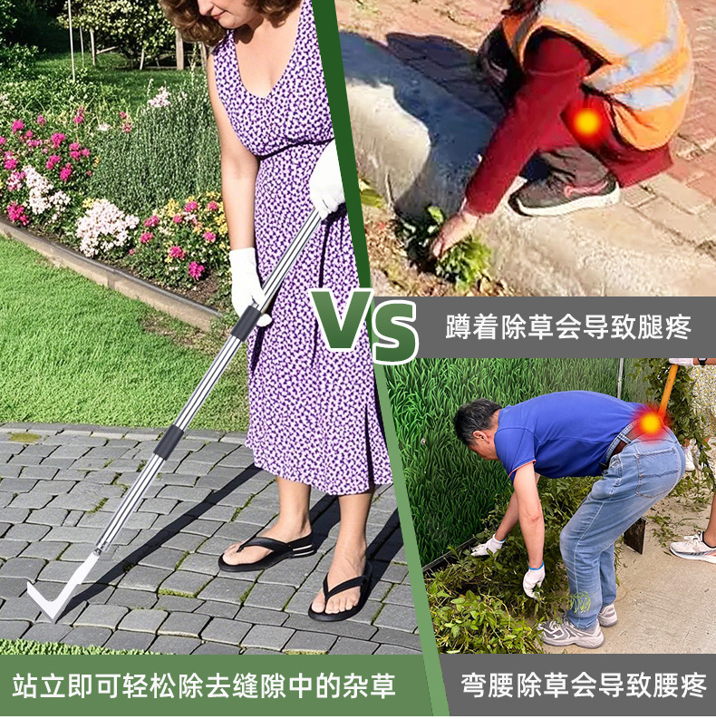 Gancho de deshierbe de acero inoxidable, cuchillo de hierba, costura, varilla de deshierbe, gancho de corte de espacio al por mayor, herramientas de jardinería de deshierbe desmontables agrietadas