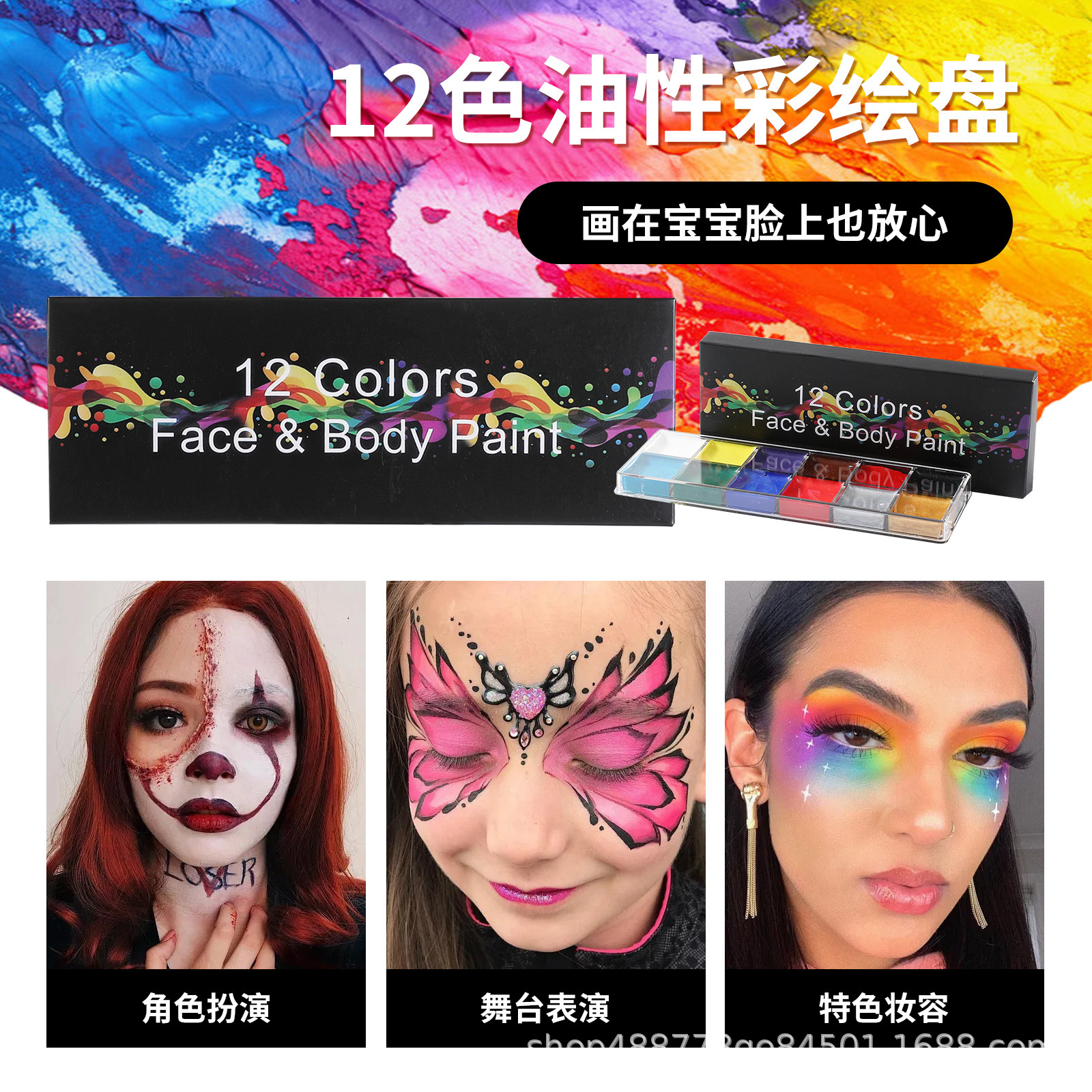 Fabricante directo de comercio exterior 12 colores de pintura al óleo cuerpo humano pintura al óleo cuerpo cara de Navidad espectáculo dramático