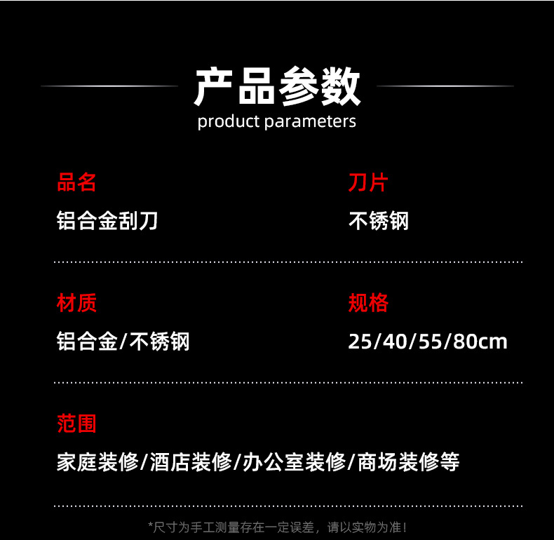 | Modelo | Raspador de nivelación de aleación de aluminio de 25cm,Raspador de nivelación de aleación de aluminio de 40cm,Raspador de nivelación de aleación de aluminio de 55cm,Raspador de nivelación de aleación de aluminio de 80cm,Raspador de nivelación raspador pequeño |