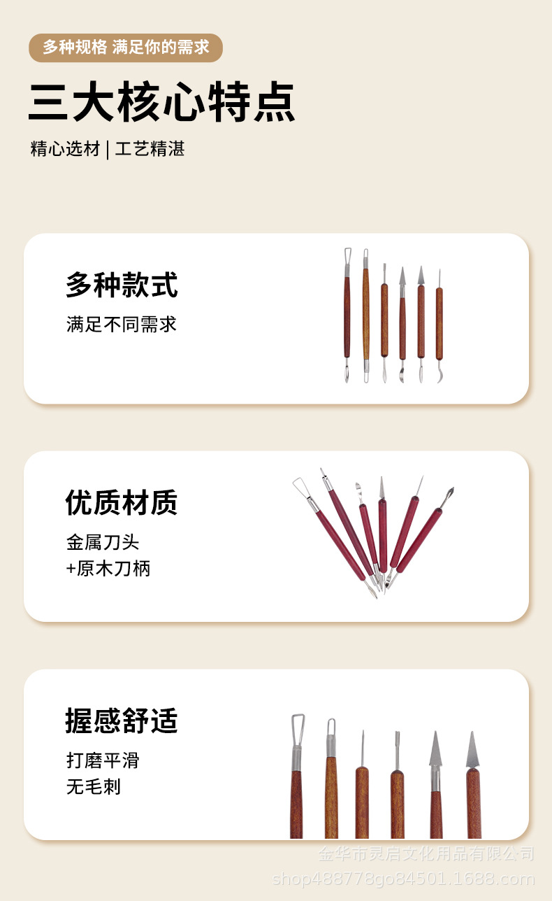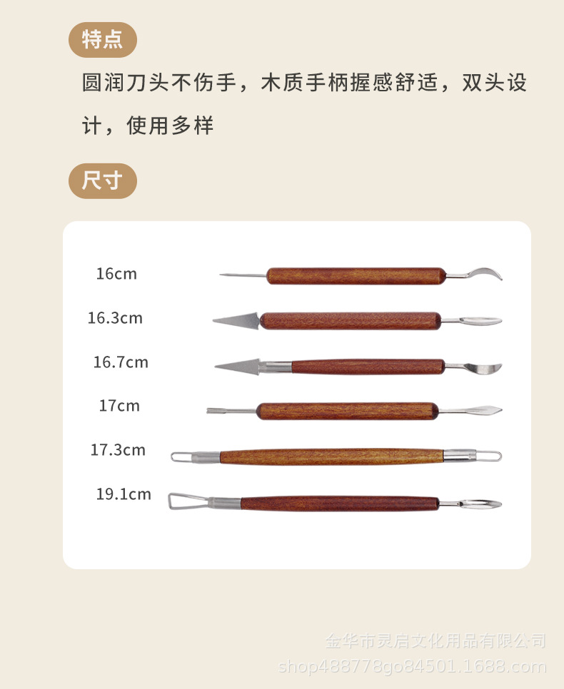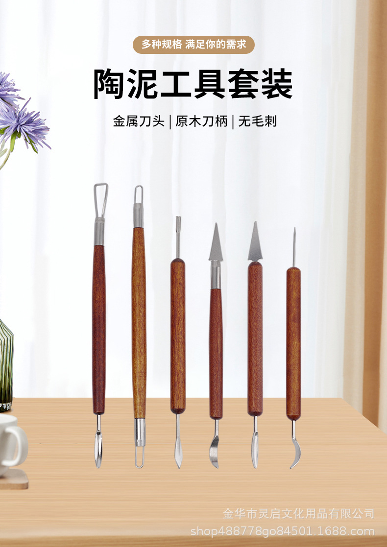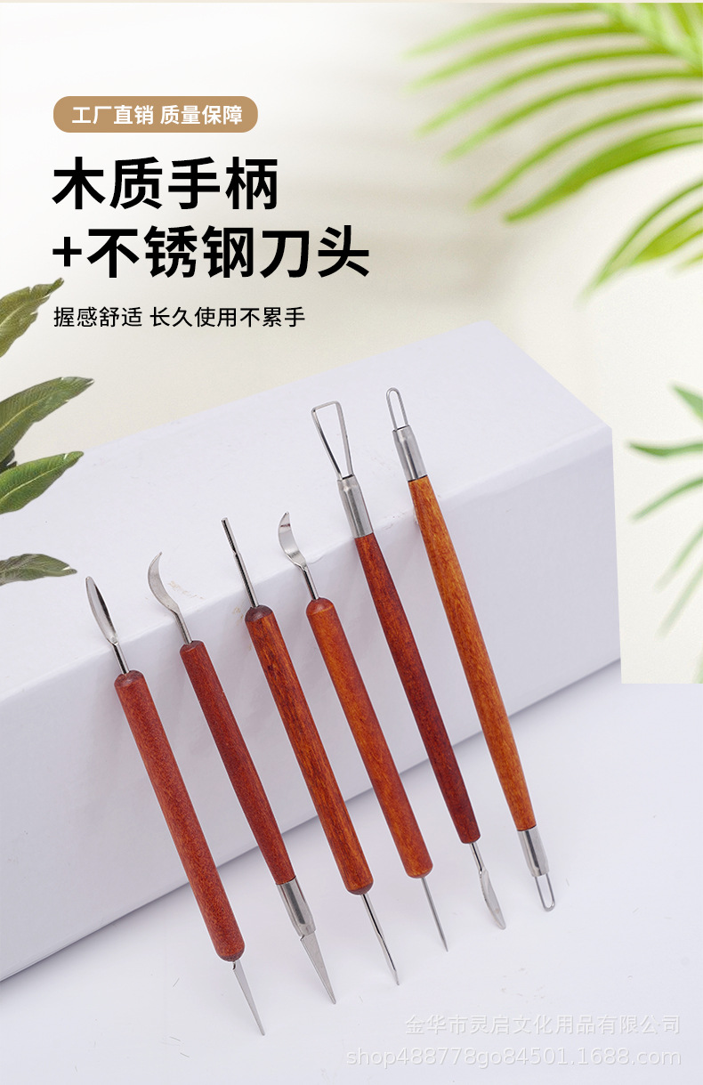 Herramientas de cerámica transfronterizas seis piezas de madera de barro de cerámica DIY herramientas de modelado de escultura cuchillo de corte de embrión cuchillo de barro herramientas de modelado