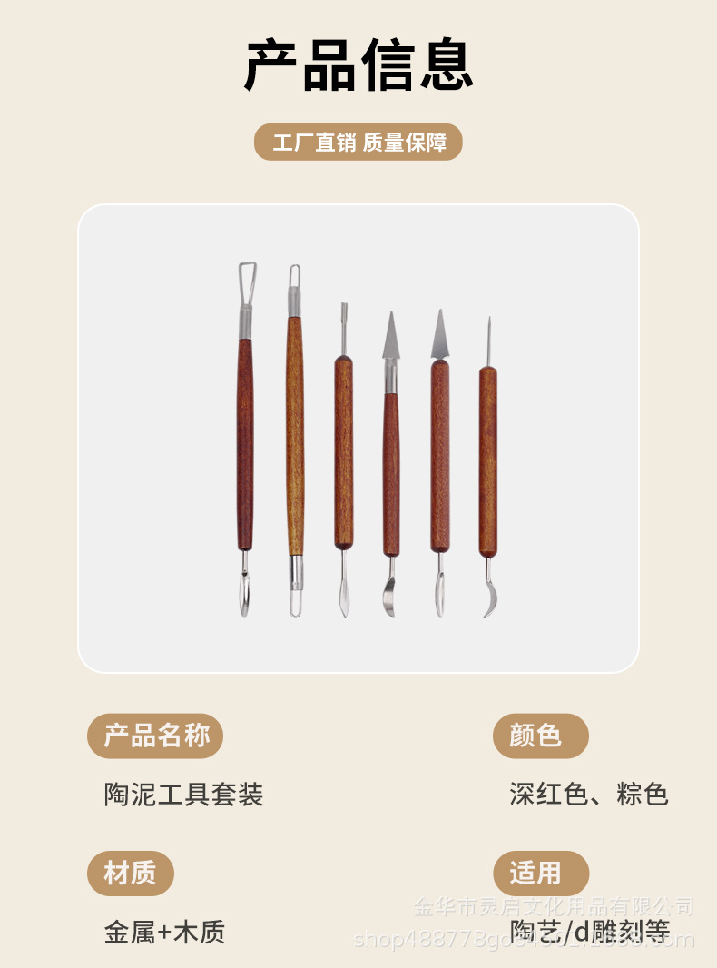 | Número de artículo | 6 piezas de herramienta de barro de cerámica de madera roja |