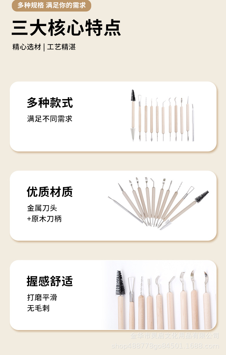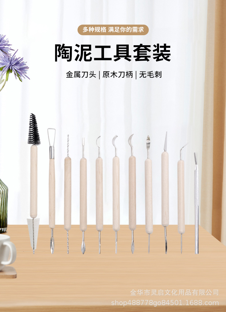 Fábrica directa clásica de 11 piezas conjuntos de herramientas de cerámica de doble cabeza raspadora de talla de alta calidad herramientas de barro artesanal