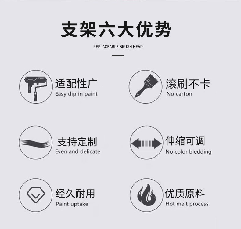 Ámbito de aplicaciónCepillo de pared grande transfronterizo Cepillo de herramienta Cepillo de rueda Cepillo de rodillo ajustable retráctil Pintura de pared Pintura de látex Juego de pintura de pared