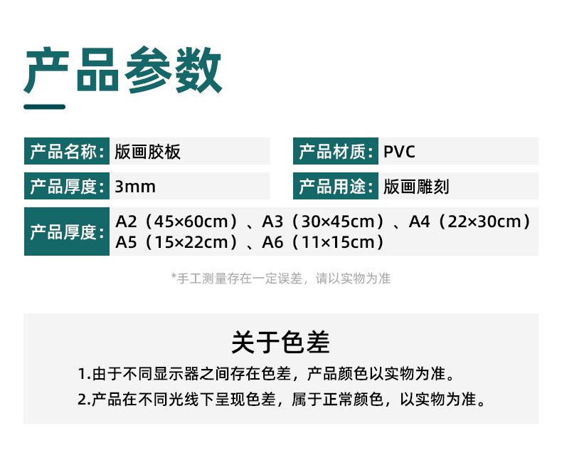 | Color | Impresión A6 placa de goma [espeso], impresión A5 placa de goma [espeso], impresión A4 placa de goma [espeso], impresión A3 placa de goma [espeso], impresión A2 placa de goma [espeso] |