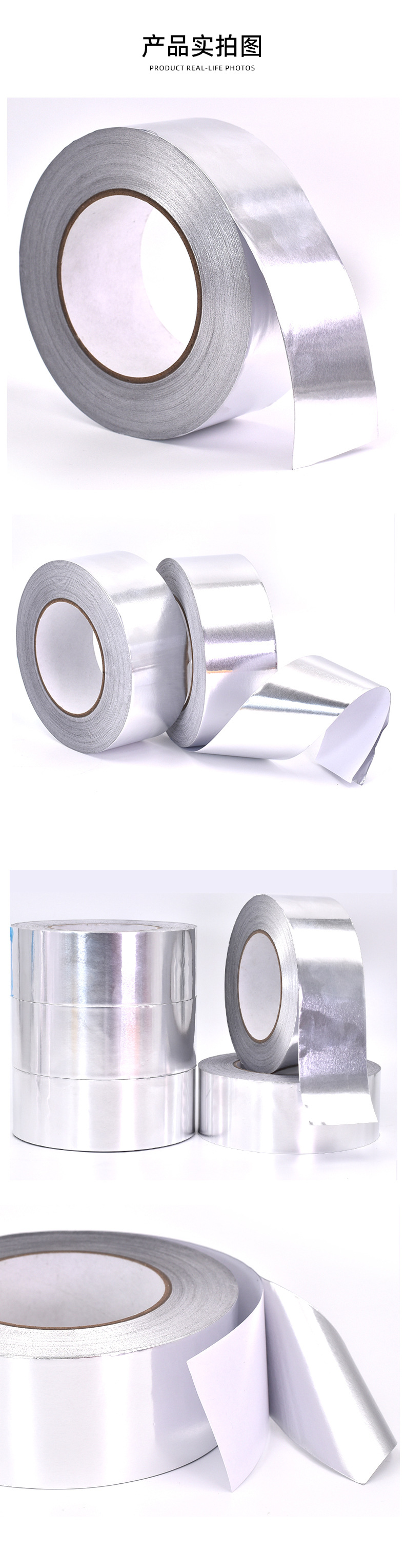 Cinta de aluminio con fibra de vidrio; ancho 5 cm * largo 10 m; grosor 0,15 mm.