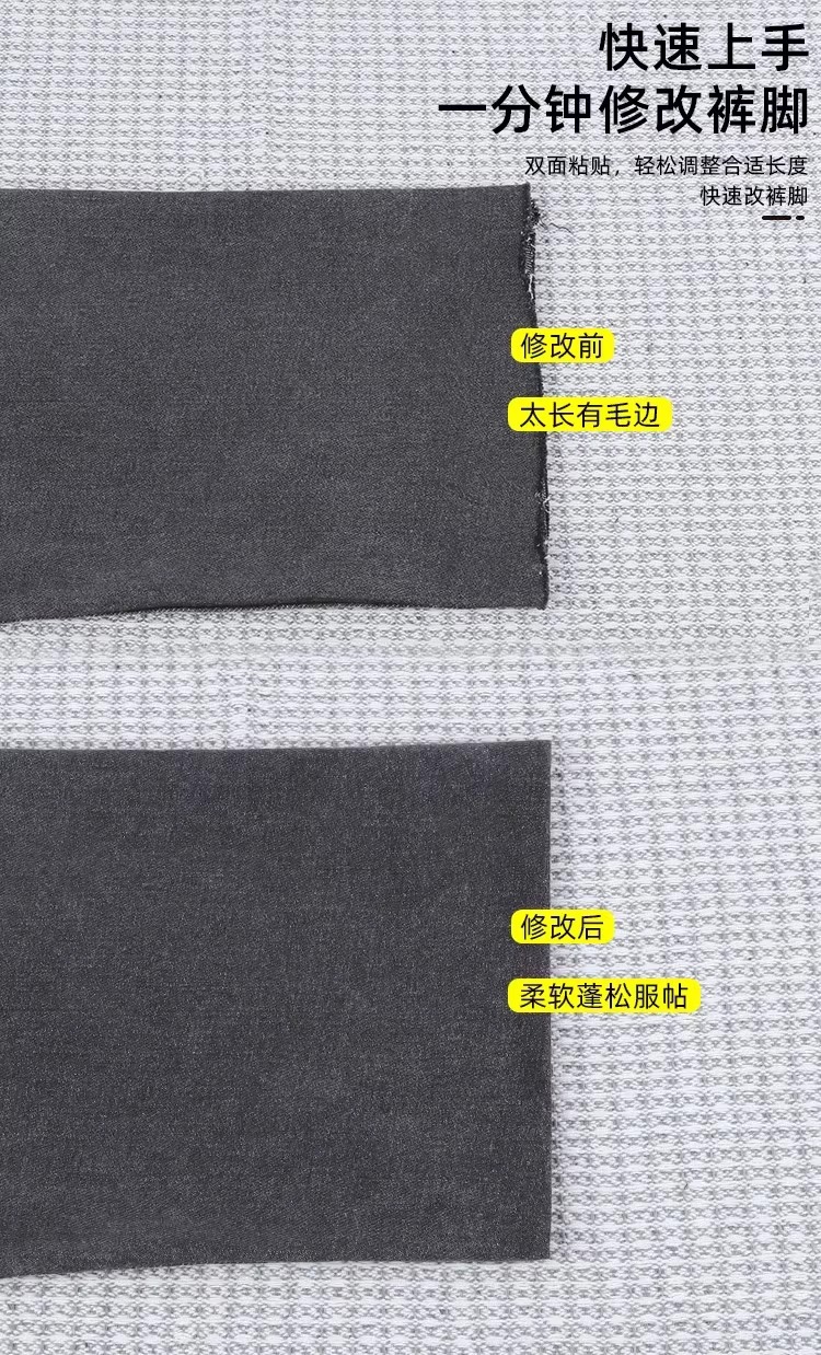 Los pantalones se doblan y se doblan, los pantalones autoadhesivos se doblan y los pantalones se acortan.