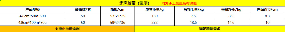 Cinta de embalaje transparente silenciosa de bajo ruido, cinta de sellado silenciosa express de comercio electrónico, cinta adhesiva BOPP, cinta silenciosa