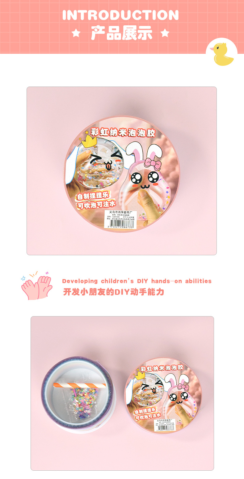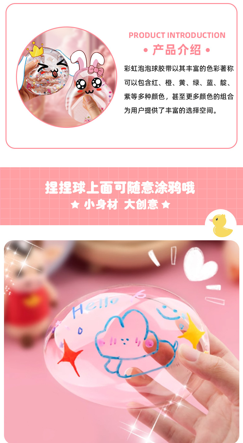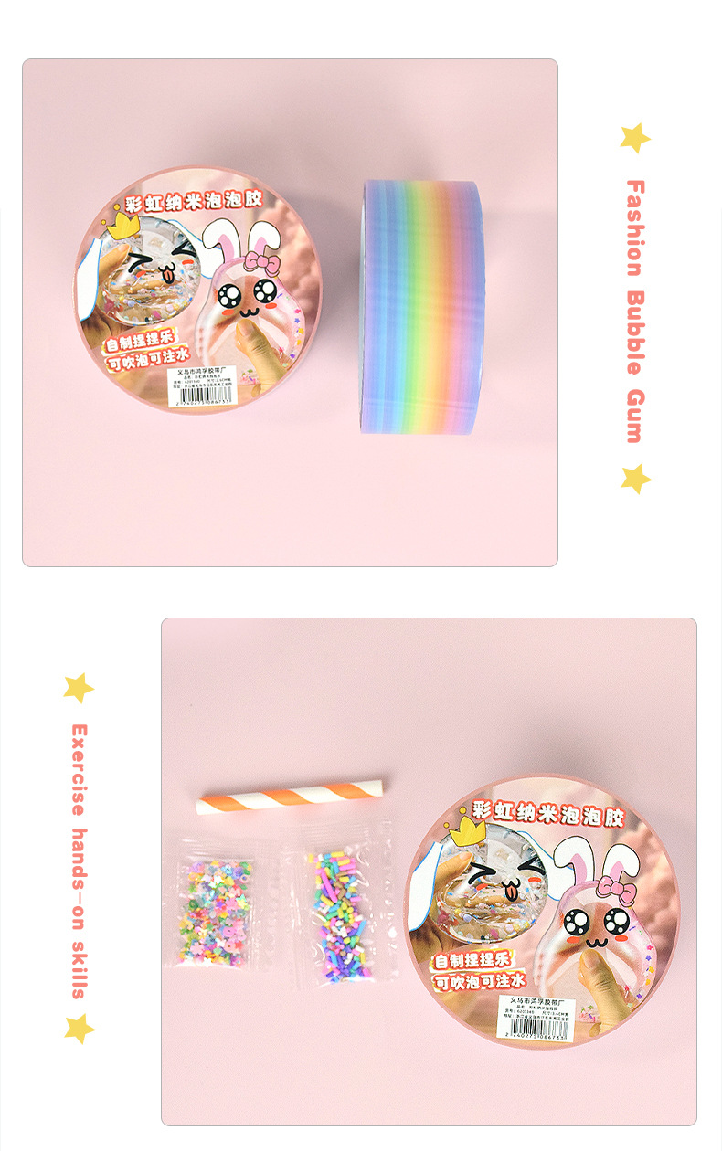 Arco iris nano burbuja pegamento pellizco pellizco soplar espuma de oro conjunto de estudiantes caseros DIY descompresión cinta adhesiva de polo de agua