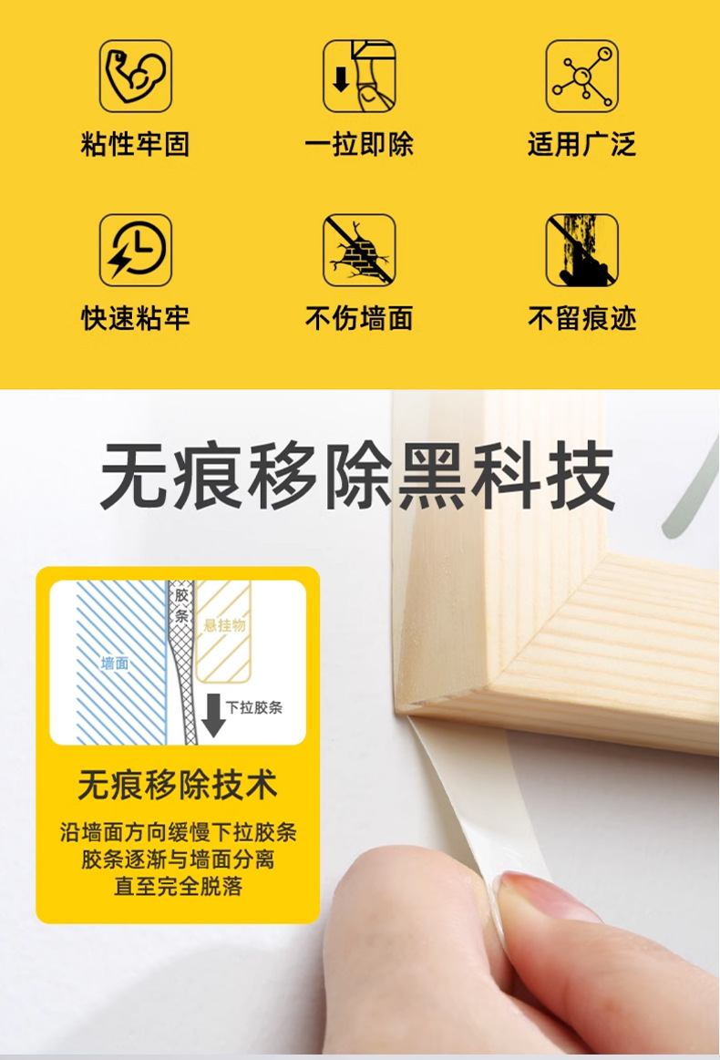 Adhesivo extraíble fácil de dibujar marco de foto pegado de doble cara pegado de alta viscosidad tela de pared papel de pared especial pegado sin marcas sin agujeros