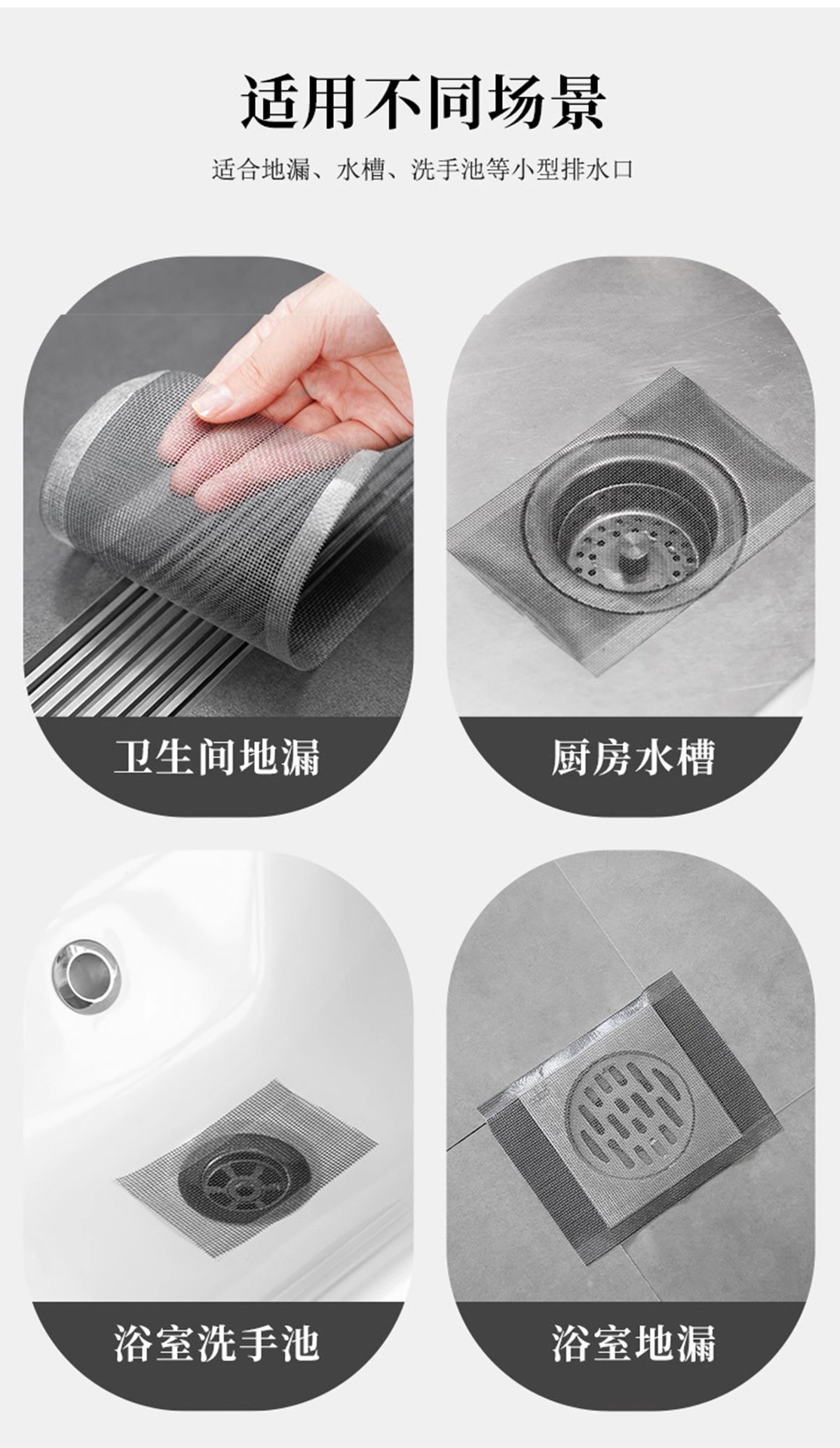 Pegatinas de desagüe de piso desechables transfronterizas enrolladas autoadhesivas anti-mosquitos baño drenaje anti-bloqueo filtro de cabello pegatinas fábrica