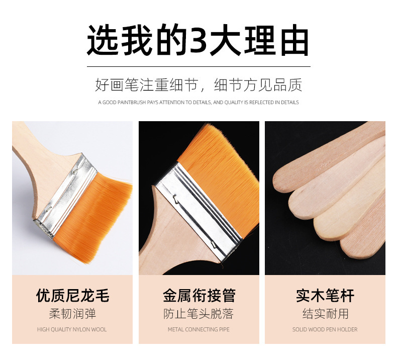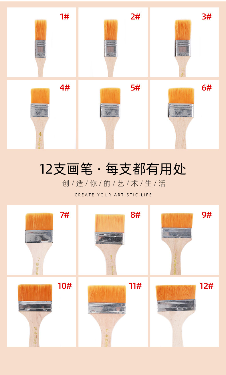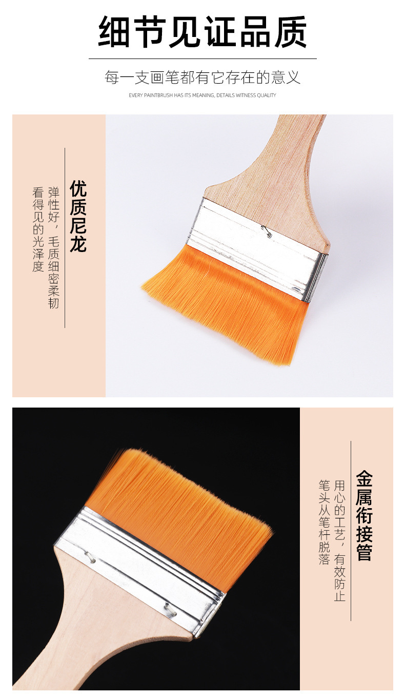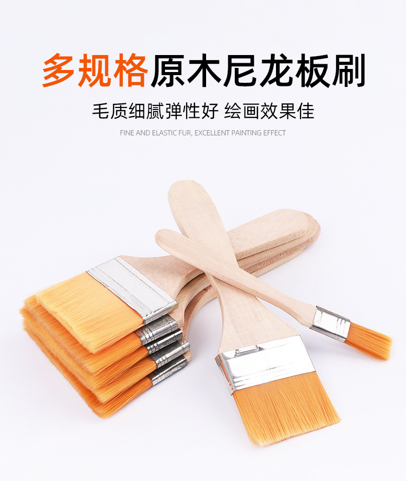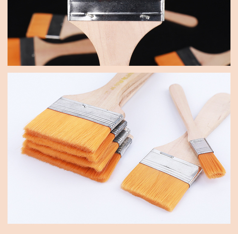 Cepillo de lana amarilla de nylon 1 pulgada 2 pulgadas 3 pulgadas cepillo de pintura de arte para niños cepillo de pintura a óleo de madera cepillo de barbacoa