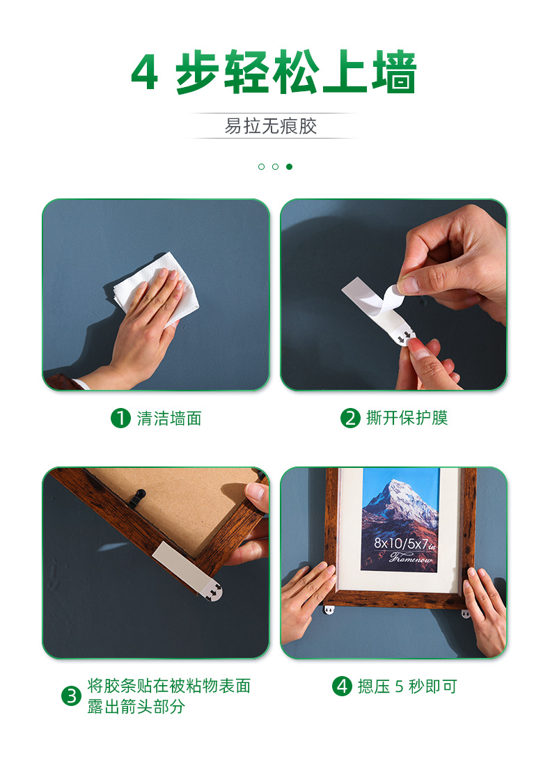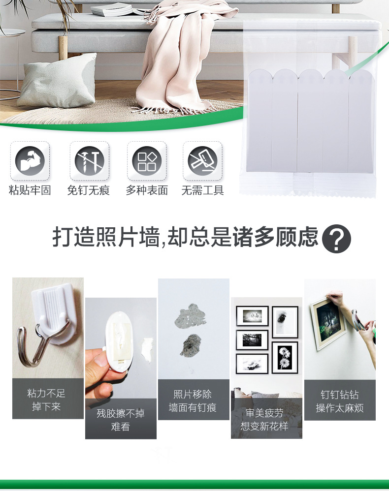 Adhesivo de fácil extracción transfronterizo marco de fotos extraíble adhesivo pintura decorativa fija Gancho adhesivo sin clavos fábrica fuerte adhesivo de doble cara sin costuras