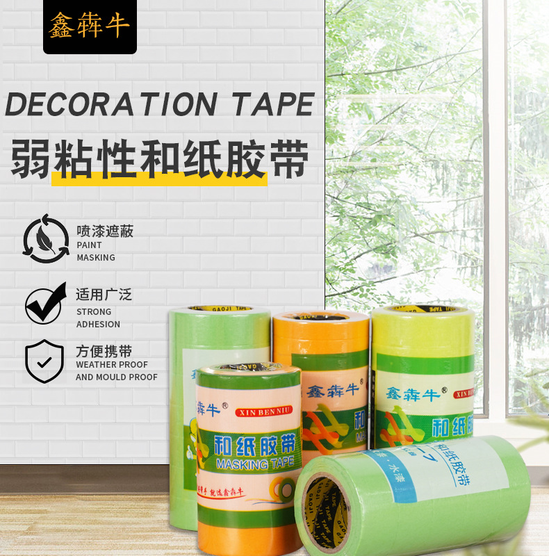 Cinta adhesiva washi amarilla de alta adherencia de 50 metros, papel de separación de colores de alta adherencia, cinta adhesiva de cristal para diario a temperatura normal