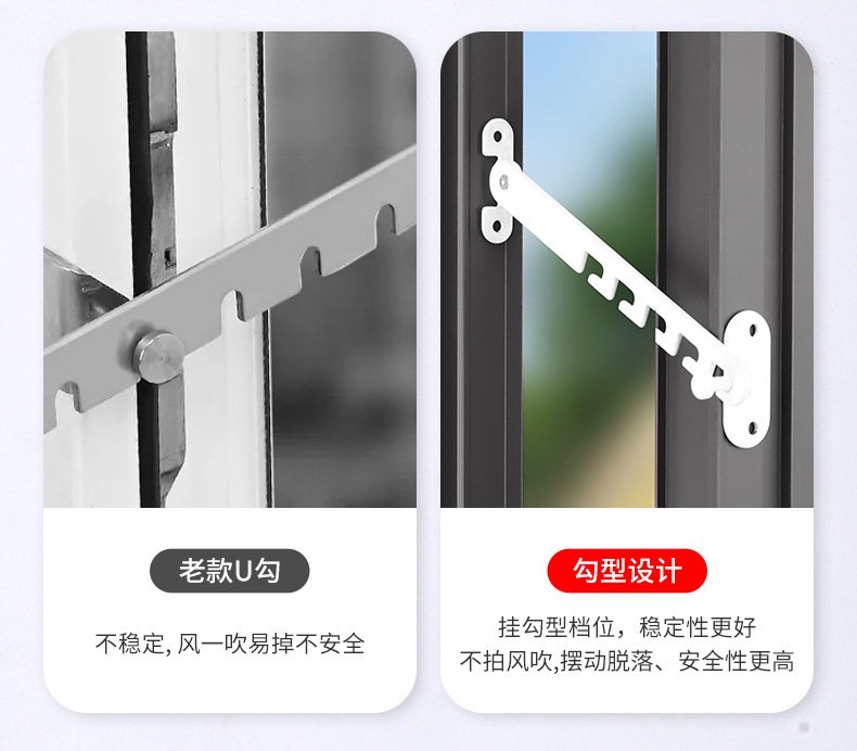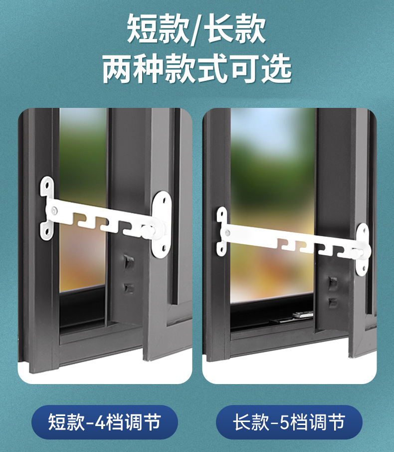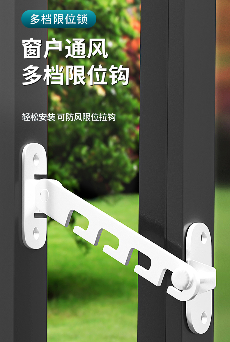 Restrictor de ventana deslizante ajustable sin agujeros de perforación y abertura plana