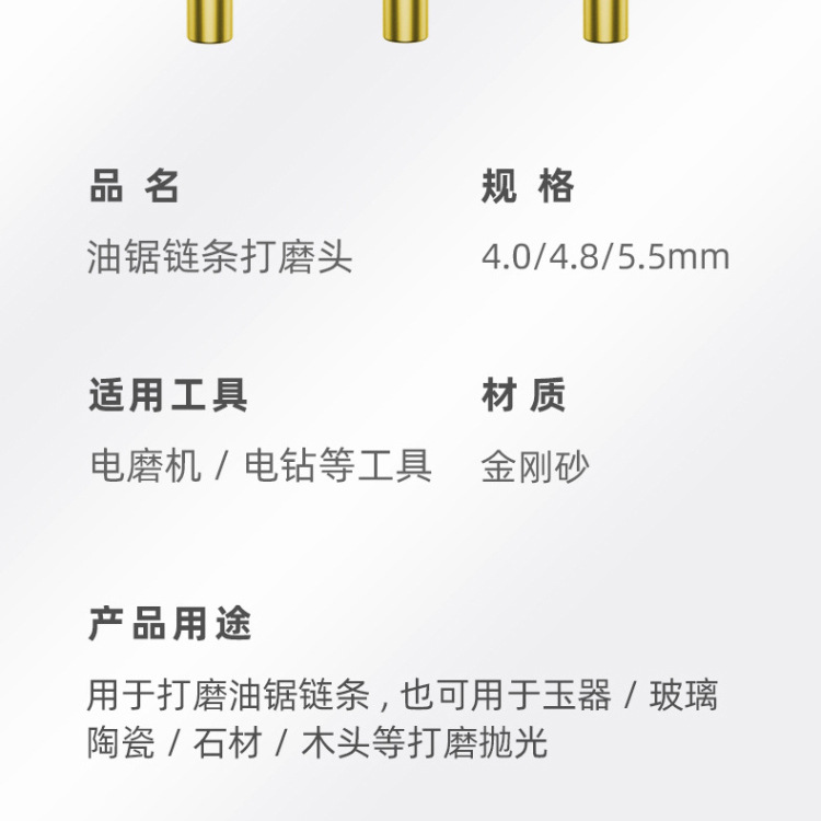 Cadena de sierra de cadena de molienda de diamante cabeza de molienda de alta dureza cabeza redonda cilíndrica sierra eléctrica Archivo de pulido de diamante cabeza de molienda