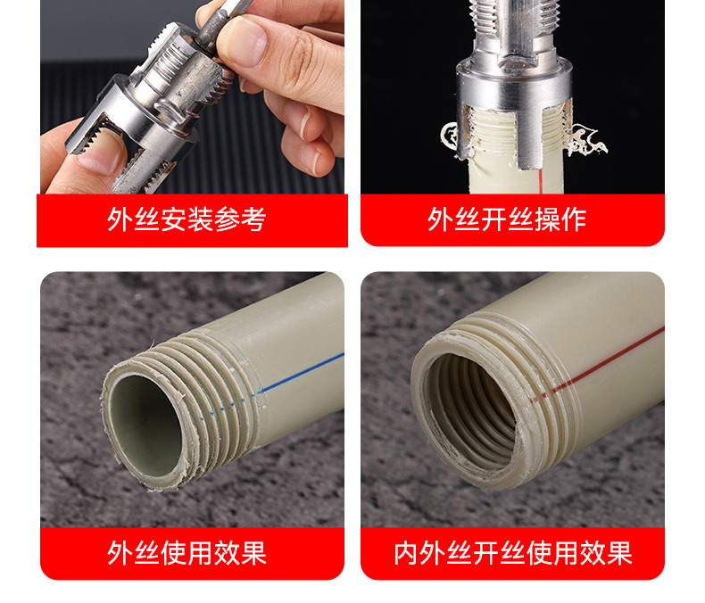 Ablinador de hilo de tubería de agua de pvc de 4 puntos y seis puntos para tubería de agua de ppr doméstica Ablinador de hilo interno y externo de acero con alto contenido de carbono