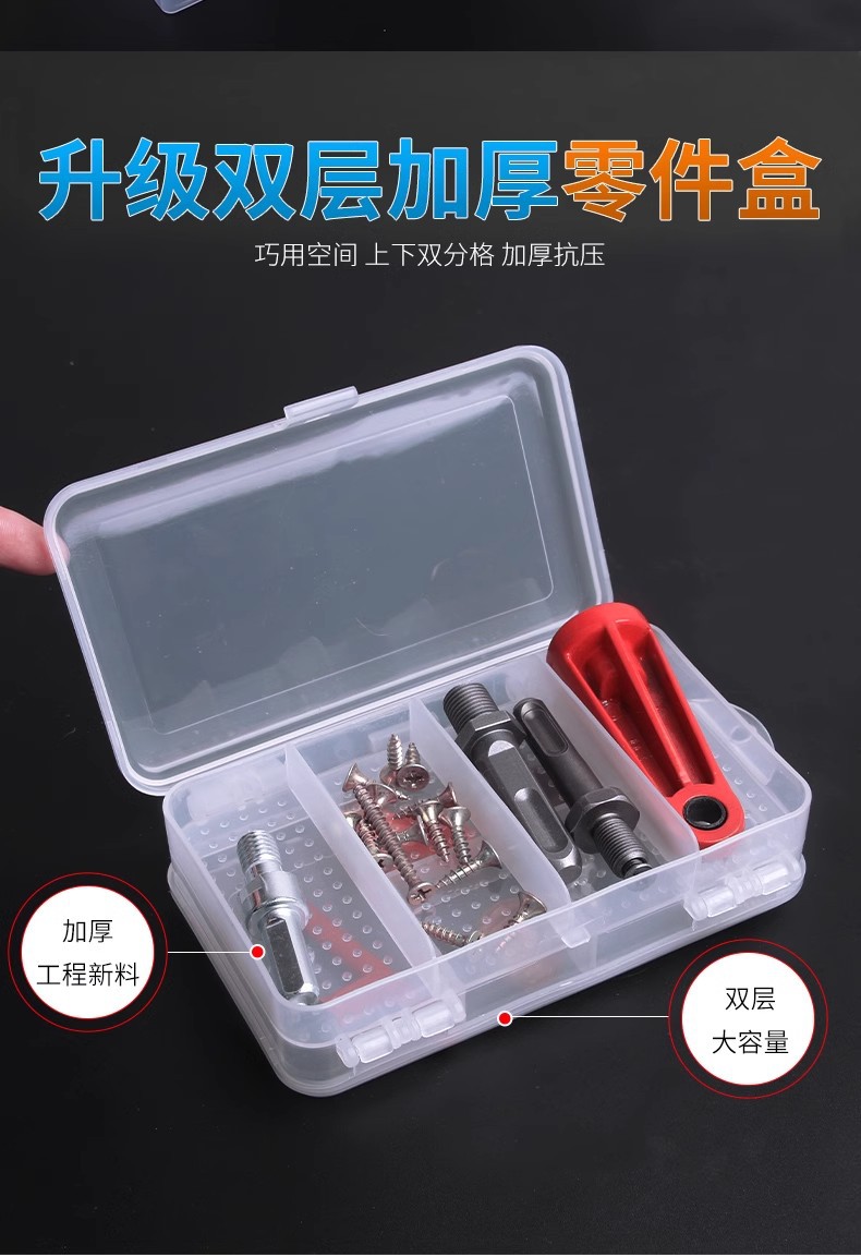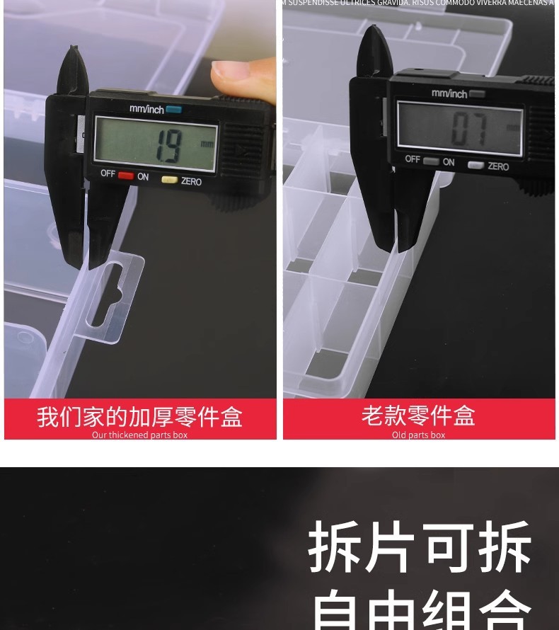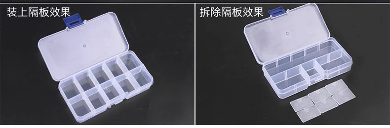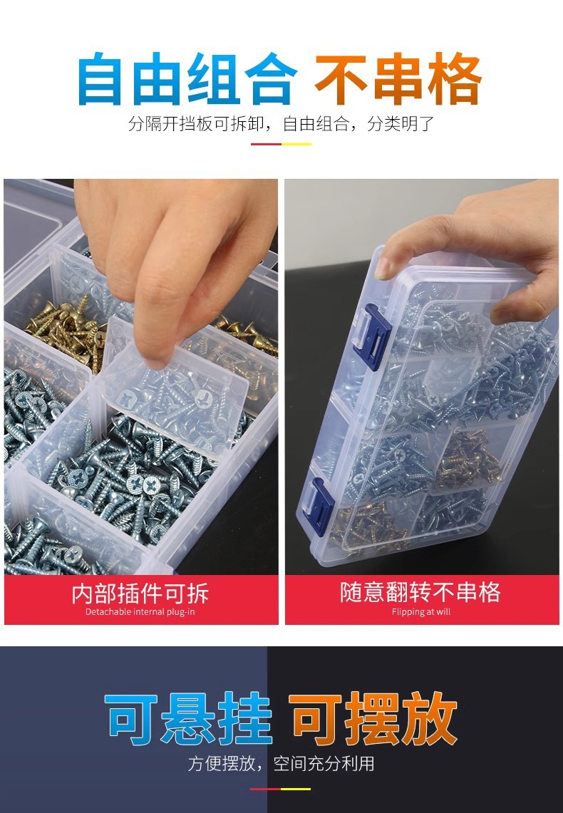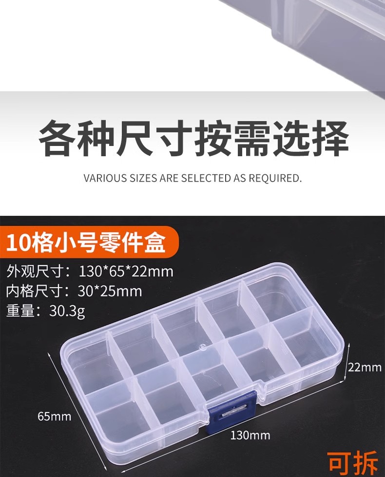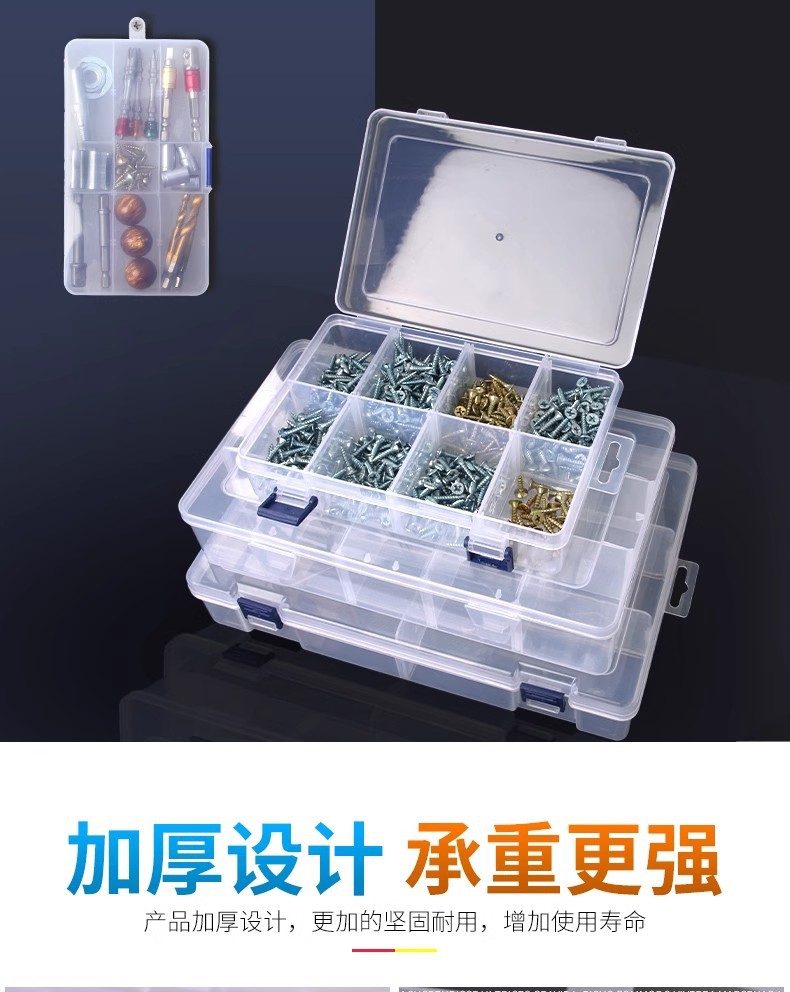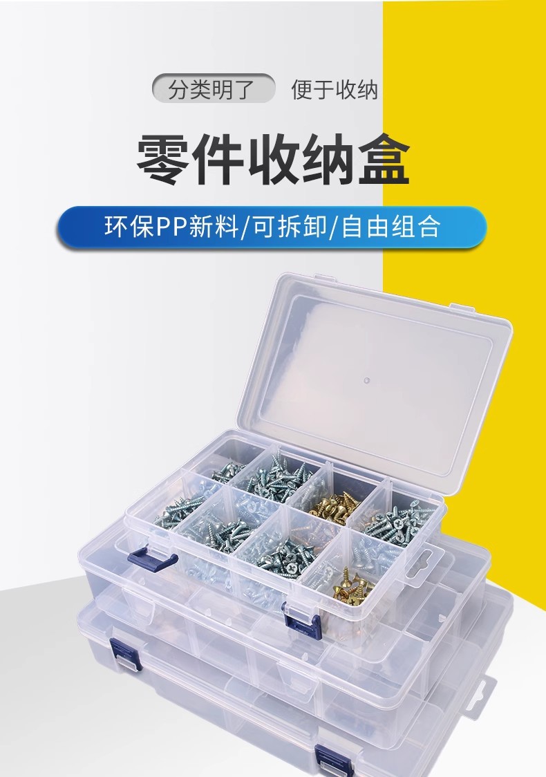 Caja de piezas de hardware rectangular pequeña separación desmontable, caja de piezas de plástico PP transparente gruesa