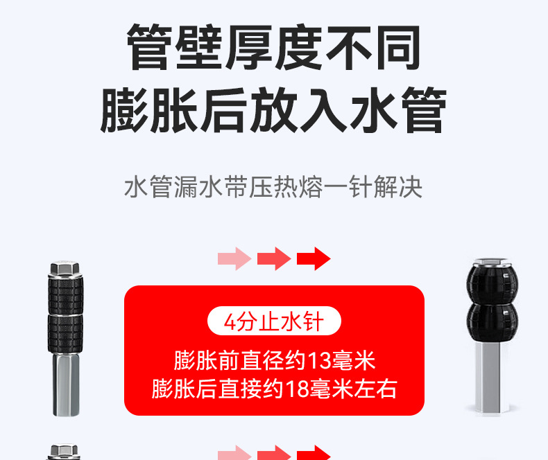 Todo el conjunto universal de agujas de parada de agua de tubería de agua ppr agujas de parada de agua de tubería de drenaje de fuga de agua artefacto de parada de agua con agujas de parada de agua de tubería de presión