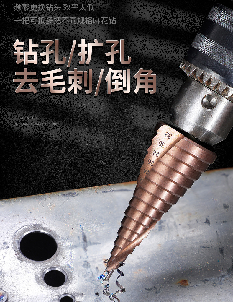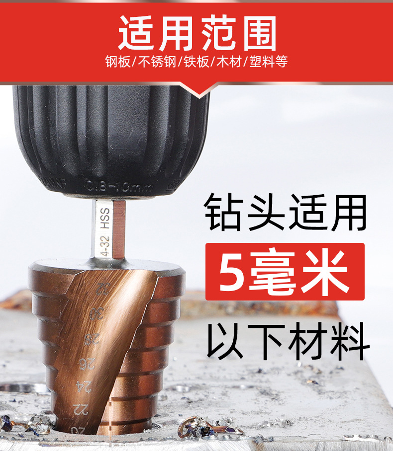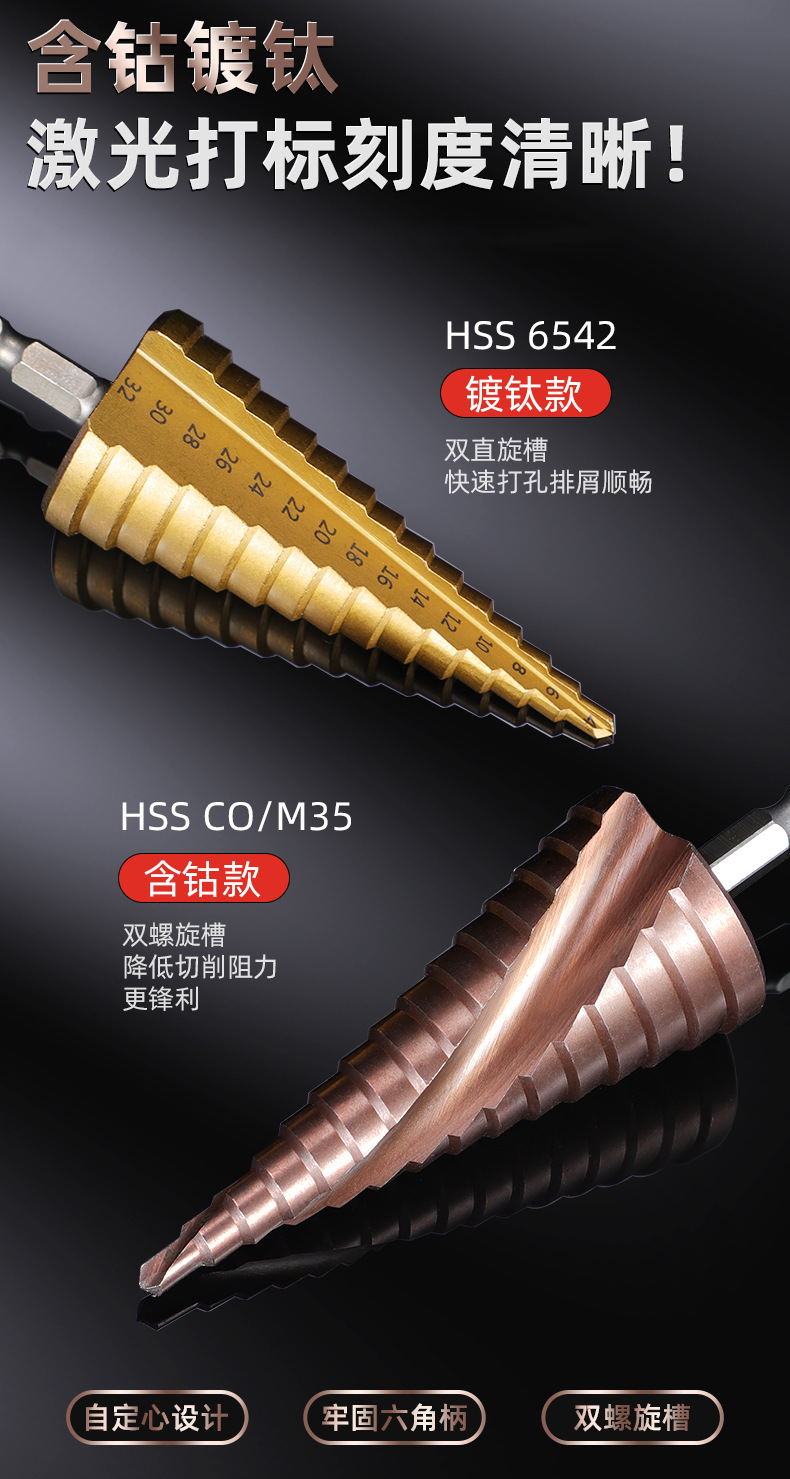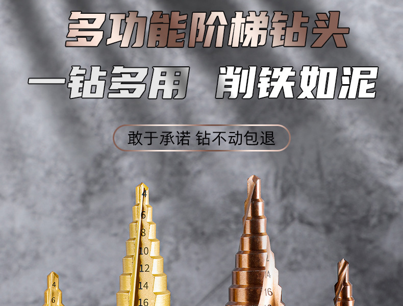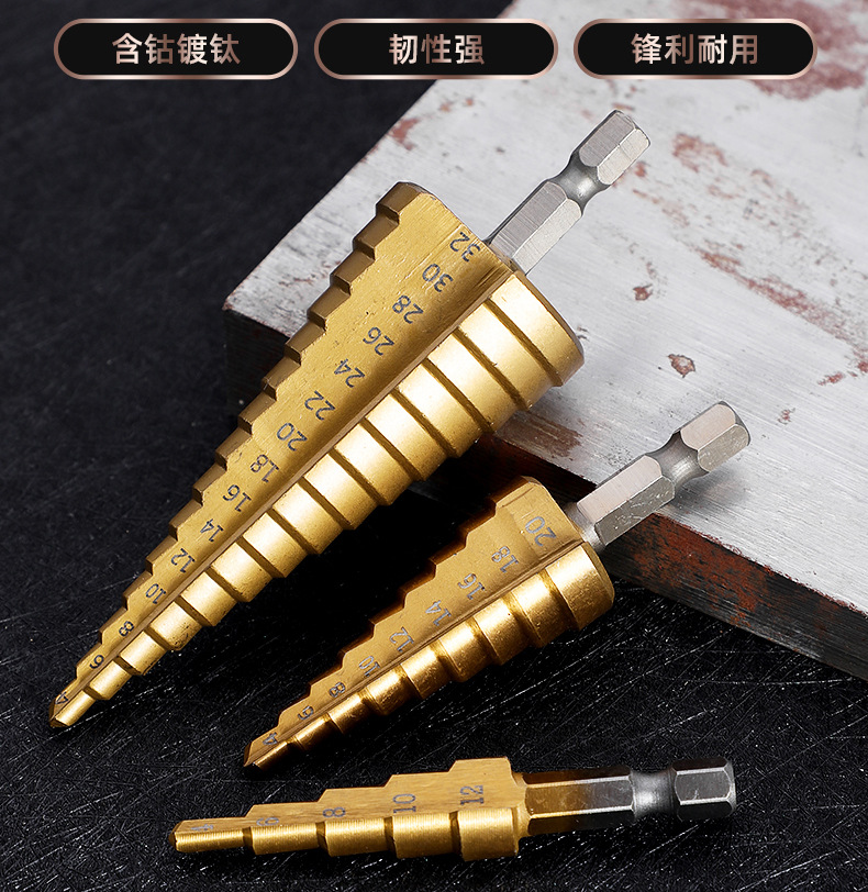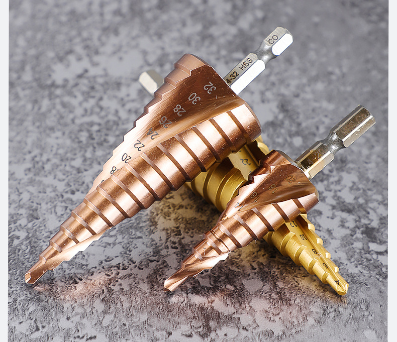 Taladro de pagoda de ranura recta en espiral con vástago hexagonal multifuncional Taladro de pagoda de escalera de cobalto de acero de alta velocidad de grado industrial