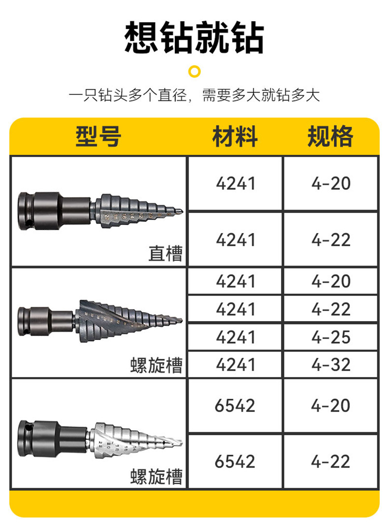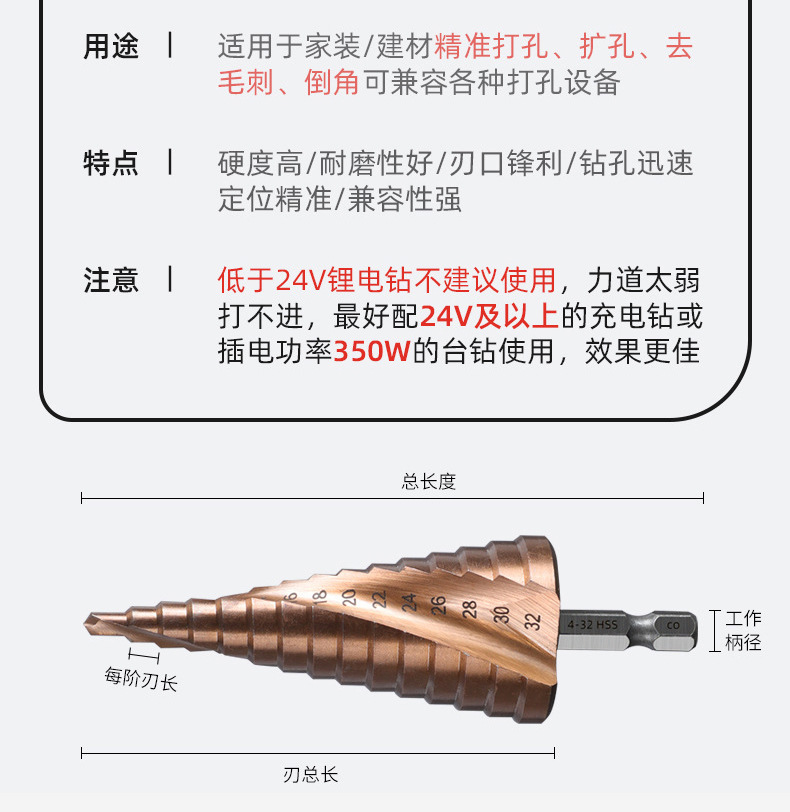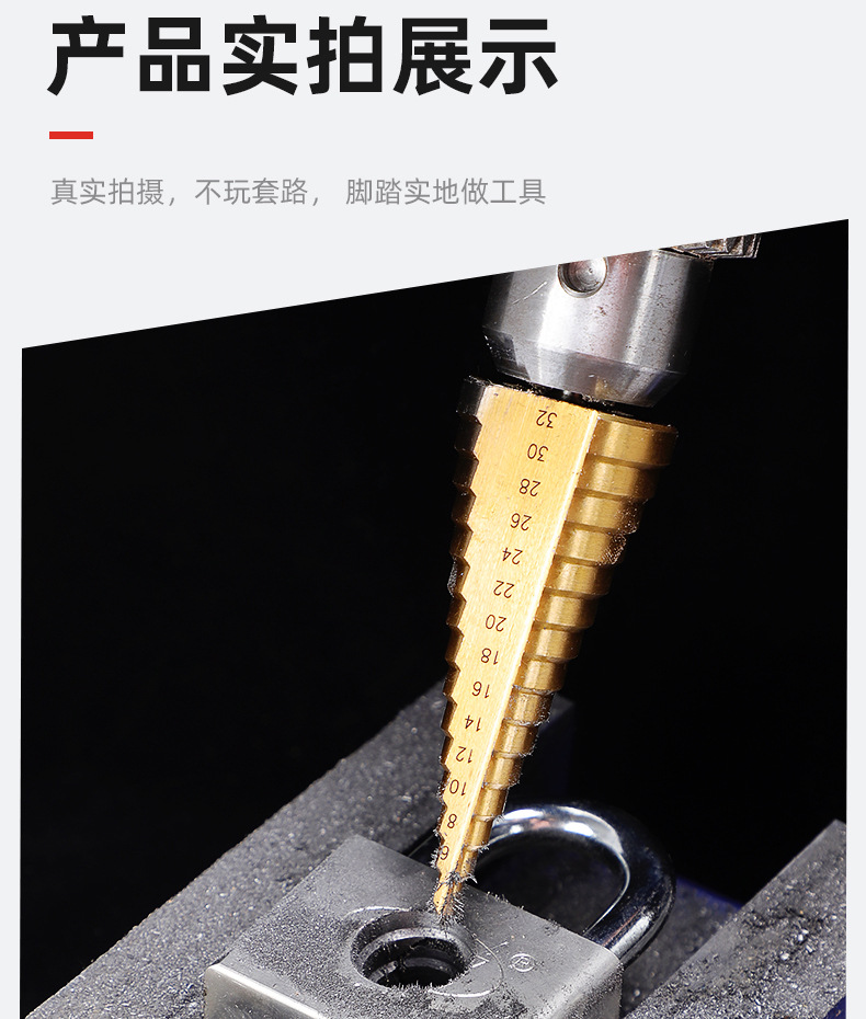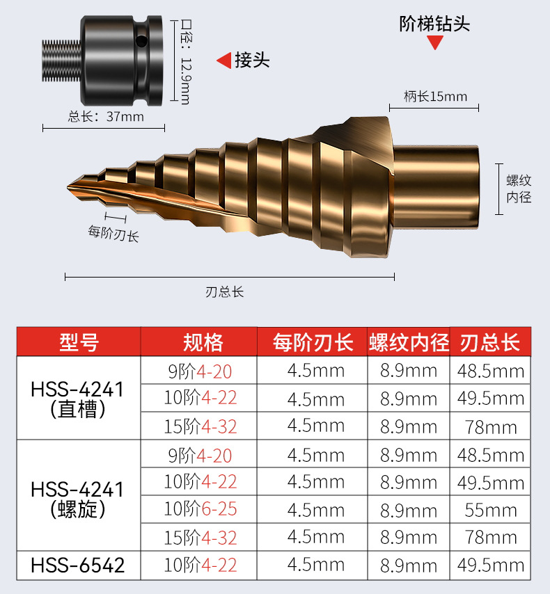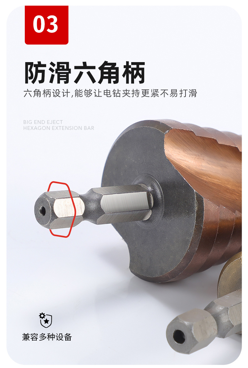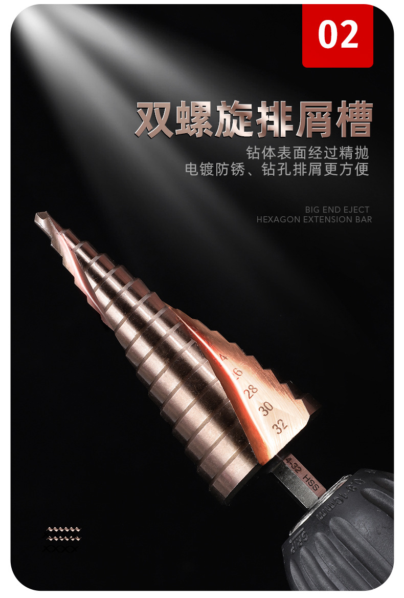 Taladro de pagoda de ranura recta en espiral con vástago hexagonal multifuncional Taladro de pagoda de escalera de cobalto de acero de alta velocidad de grado industrial
