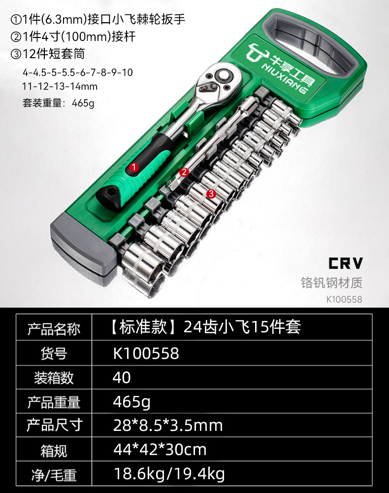 ![[Modelo estándar] Juego de 15 piezas Xiaofei de 24 dientes](https://cbu01.alicdn.com/img/ibank/O1CN01vy0fiq2LrGcRXC1OM_!!3844389745-0-cib.jpg)